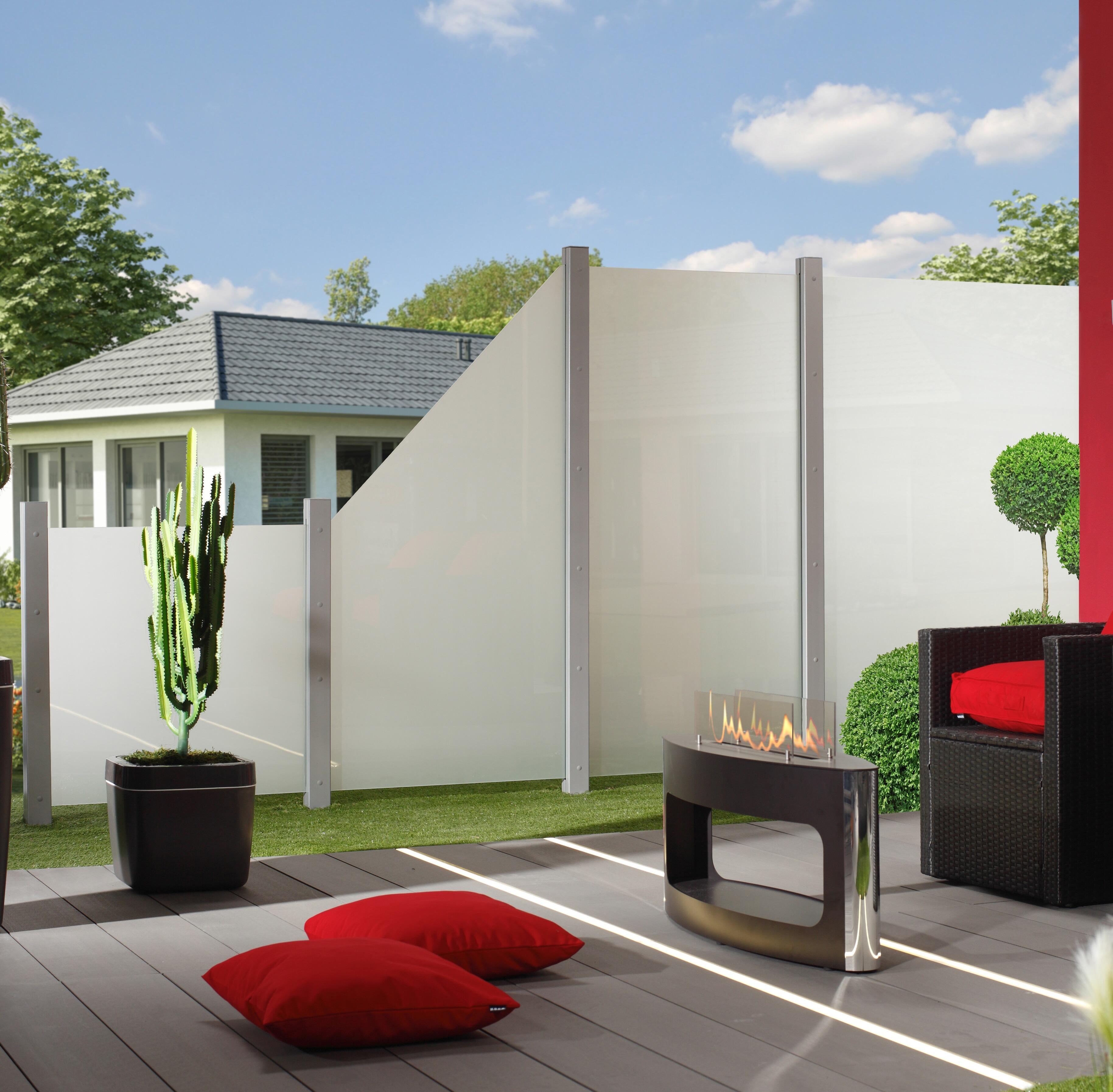 Panneau d'occultation en verre trempé epaisseur 8mm OPAQUE 90X180cm. Il coupe du vent tout en apportant une touche déco avec son aspect MAT. IMPERATIF nécessite pour son installation Poteaux H 193cm droit 70248045 / Angle 70248073 + Bases à visser 70248094 ou à sceller 70248080