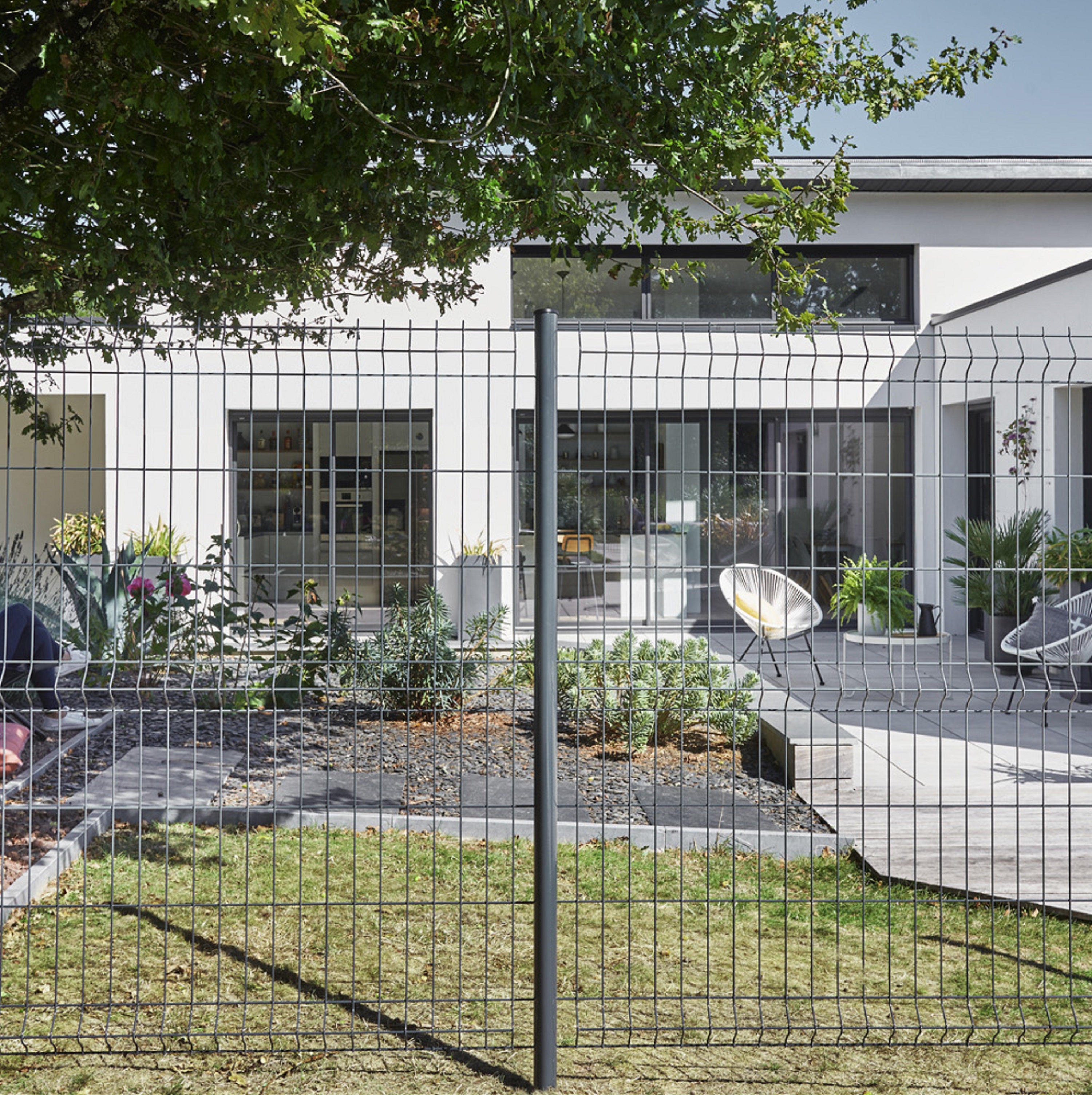 La pose de grillage rigide avec occultation nécessite le respect de certaines préconisations d'installation concernant le type de pose et le modèle de poteaux. Pour une clôture avec occultation réalisée avec des panneaux Naterial et Cerista S. le choix des poteaux est le suivant : En dessous de 1m50 : poteaux Axor. A partir de 1m50 : poteaux Axis. La pose sur sur platines est possible à 2 conditions : Hauteur inférieure à 1m50 et Poteaux avec sur platines soudée et non pas sur platiness amovibles. Panneau soudé à plis NATERIAL Gris 7016 - Largeur 2.50m - Hauteur 1m70 - Maille 200x55mm - Fil vertical diamètre 3.8mm et fil horizontal diamètre 4.8mm - Pose avec poteau à encoches à sceller