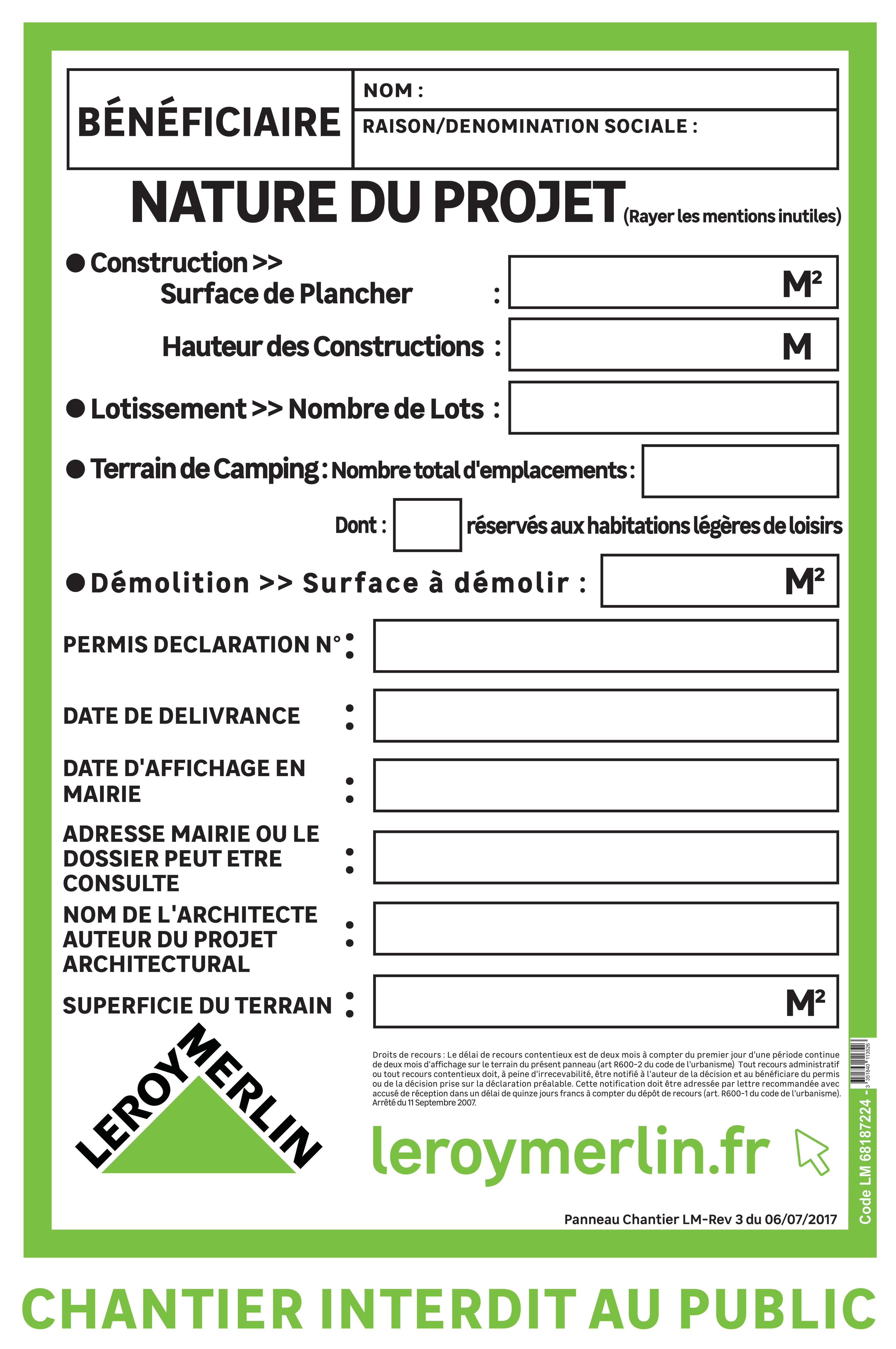 Bonjour, dans les avis "clients" il est stipulé que le panneau de permis de construire est offert quand on est titulaire de la carte Leroy Merlin. Est-ce exact ? Merci pour votre confirmation.