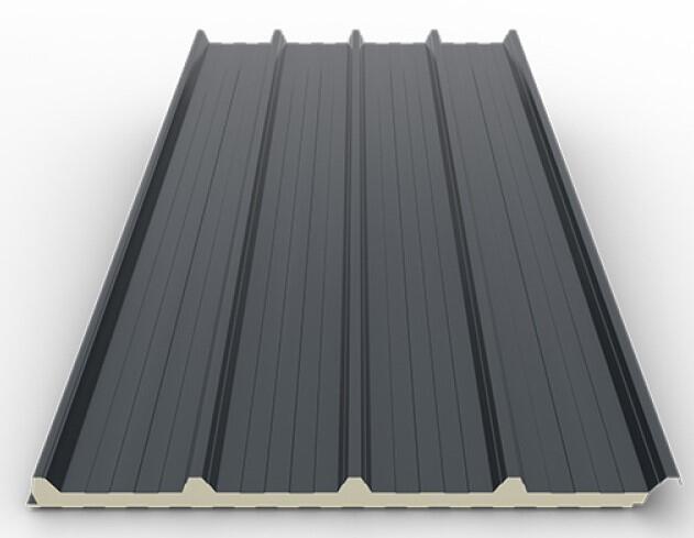 Panneau sandwich de bardage PIR Coloris Gris Anthracite RAL 7016, Longueur 3m. Parement EXT Acier 0,4 mm / INT Acier 0,4 mm. INT 25microns . Epaisseur de mousse : 40 mm.