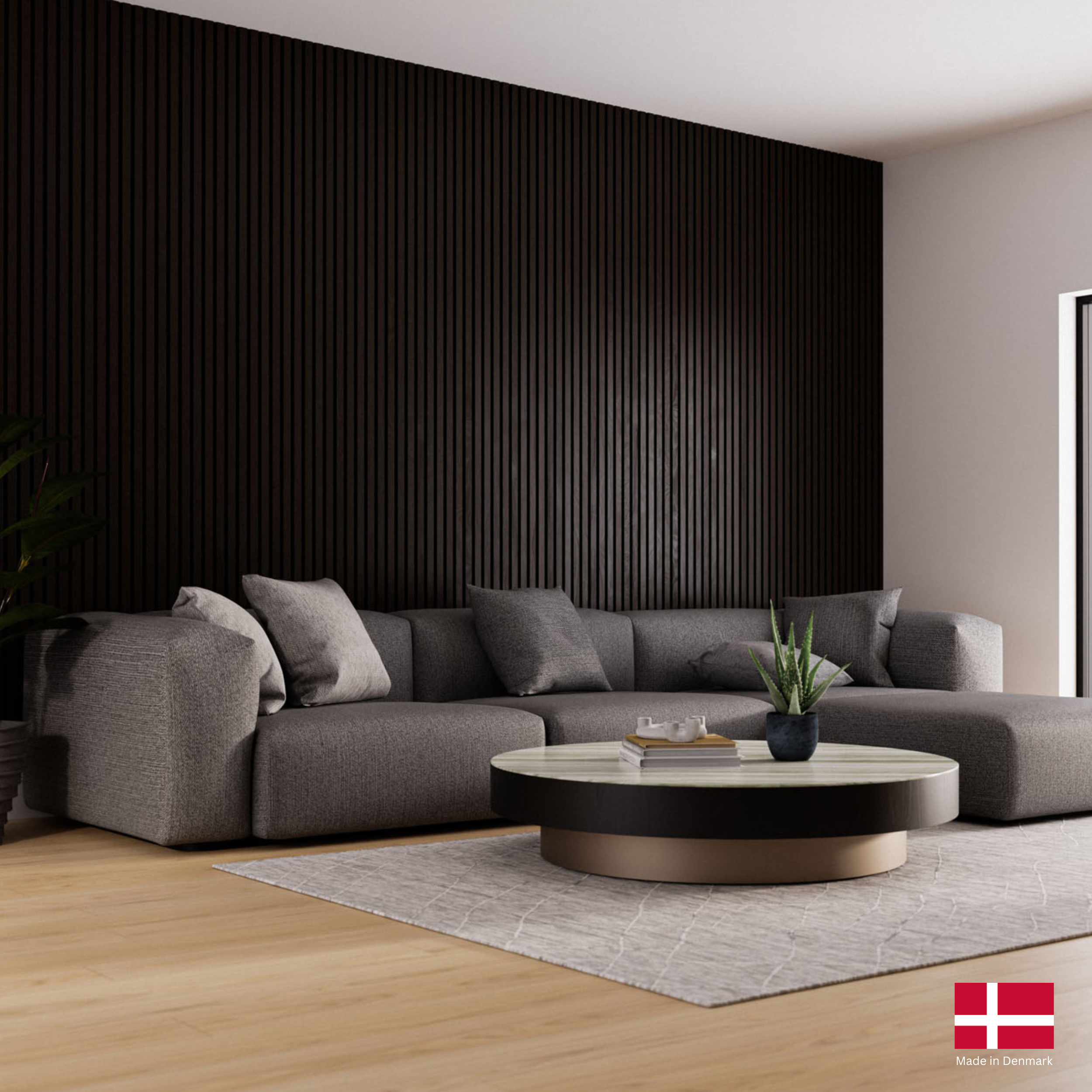 Panneau tasseaux acoustique MDF PREMIUM décor chêne noir, feutrine noire, 240x60 cm Nordic Acoustics