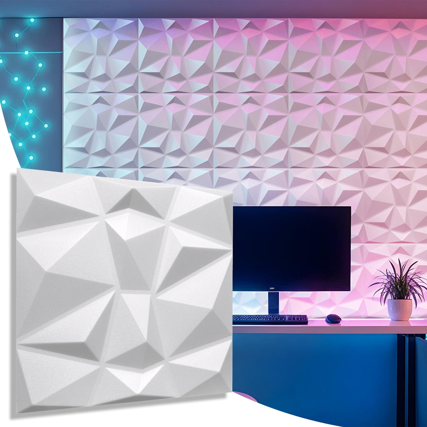 Panneaux muraux 3D décors revêtement mural panneaux de plafond POLYSTYRENE MATERIAL STYROPOR-TYPE 3mm force 8 pièces - 2m² Diamant Blanc