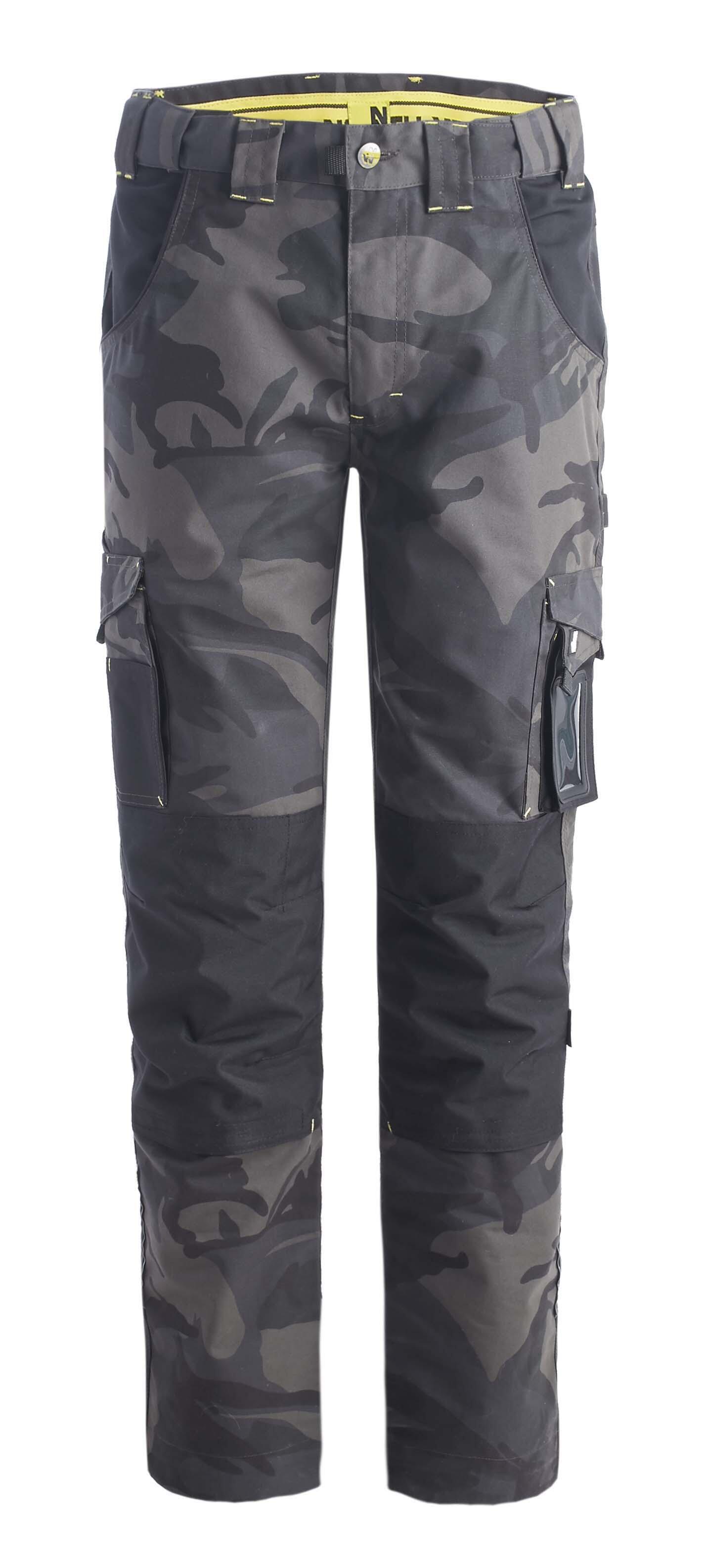Initialement publié sur Pantalon de travail Adam - wood 46 NINE WORTHS gris camouflage, taille 46