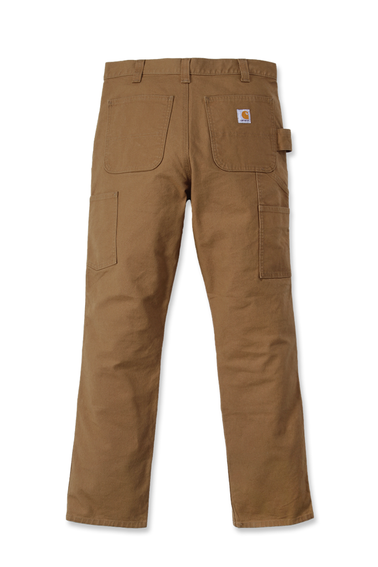 Pantalon de travail double front Cotton Duck stretch • Slim fit : coupe cintrée • Doubles empiècements cuisses-genoux avec genoux préformés • Plusieurs poches outils • Boucle marteau côté droit • 2 grandes poches avant • Poche ticket • 2 poches arrière avec étiquette Carhartt® cousue côté droit • Coutures principales triples • Zip YKK®. Composition : Toile 99% coton, 1% Spandex-élasthanne.