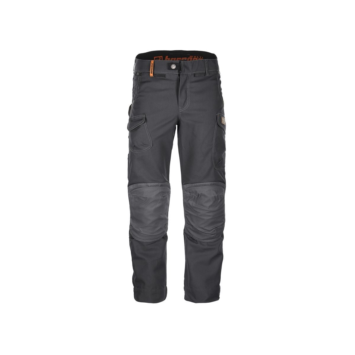 Le Pantalon Harpoon Multi Graphite de la marque Bosseur est composé de coton polyester robuste et confortable avec de nombreuses poches pour vos outils, une ceinture extensible et des absorbeurs de chocs permanents aux genoux.
