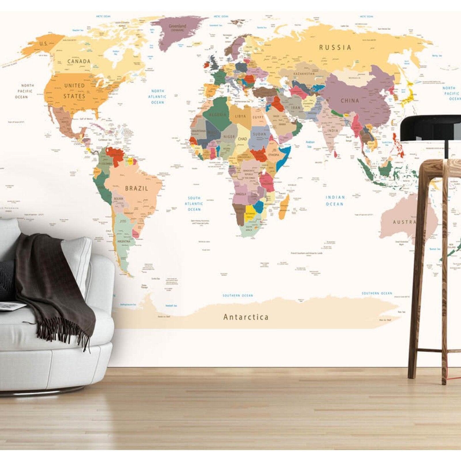 Papier peint intissé 'World Map' solide, résistant à l'eau et aux rayures est à poser au mur. Papier peint intissé 'World Map' représentant un motif inspiré sera une décoration particulière pour toutes les pièces. Les papiers peints intissés sont posés au mur avec de la colle pour papier peint intissé. Celle-ci peut être posé dans chaque pièce, même dans une salle de bain et dans la cuisine. Papier peint se distingue par une ace brillante et couvre des imperfections du mur. Impression de la haute qualité L'impression numérique de la résolution de 600dpi dans la technologie Xeikon et les couleurs vives de papier peint intissé font remplir votre mur et agrandir votre intérieur. Celui-ci forme une couche isolante et permet aux murs de respirer. L'impression résistante à l'eau est très durable. Montage facile Chaque papier peint est partagé en lés de 50 de longueur. Eco et en sécurité En utilisant des matériaux fiables, nos papiers peints peuvent être posés dans une chambre à coucher et chambre d'enfant. Emballage solide Papier peint est enroulé et mis dans un tube carton qui garantit la sécurité en transit. Chaque tube contient une notice de montage. grammage : 110g/m2