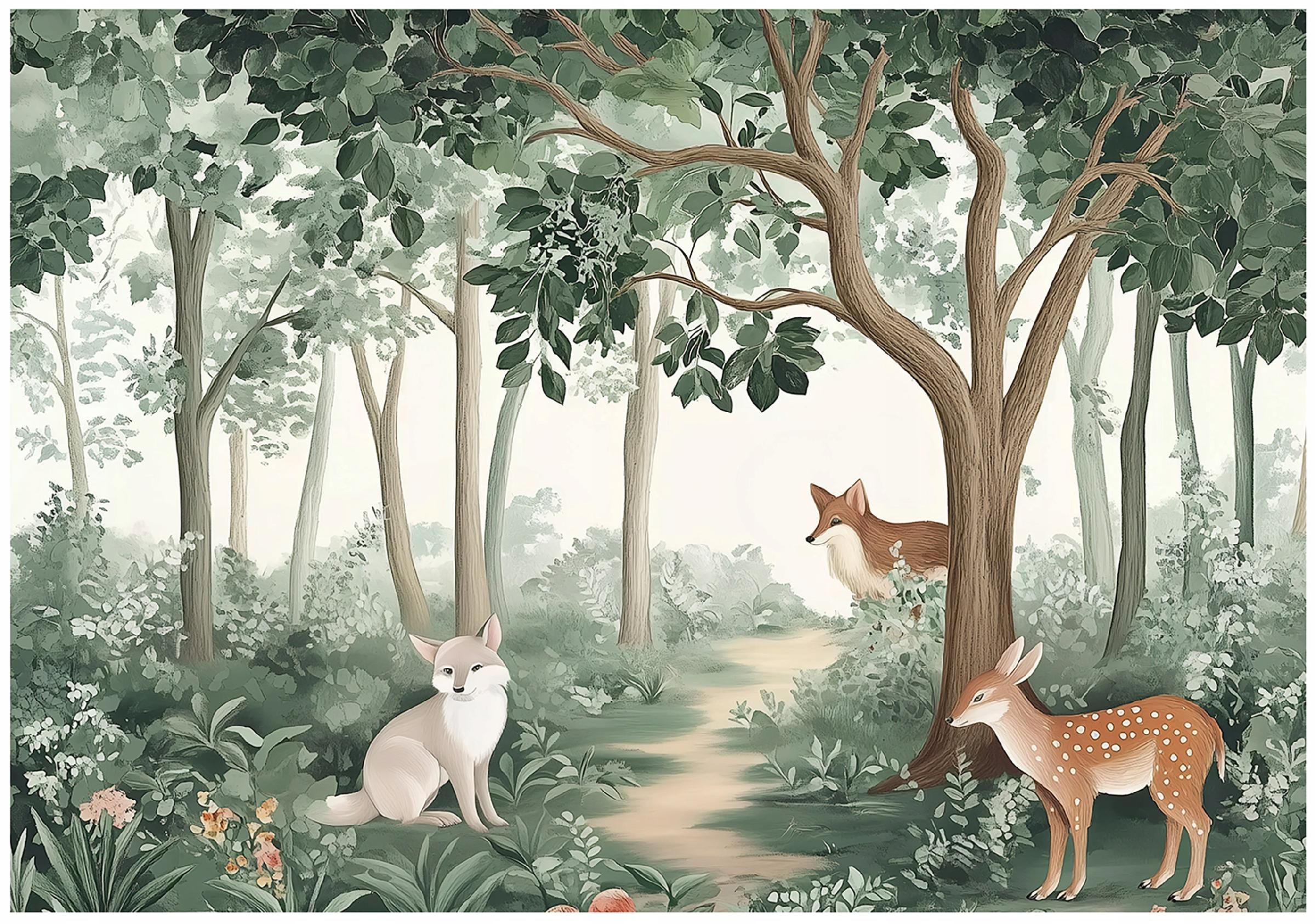 Papier Peint Enfant Forêt Animaux Intissé Panoramique 350x250 cm - Colle Inclus - Moderne Papier Peint Chambre Enfant