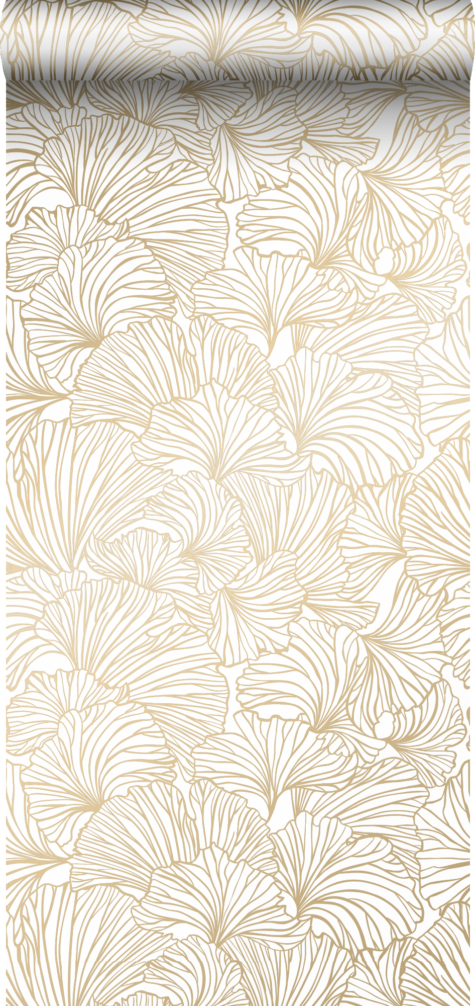 Papier peint feuilles de ginkgo blanc et or - 53 cm x 10.05 m - ESTAhome
