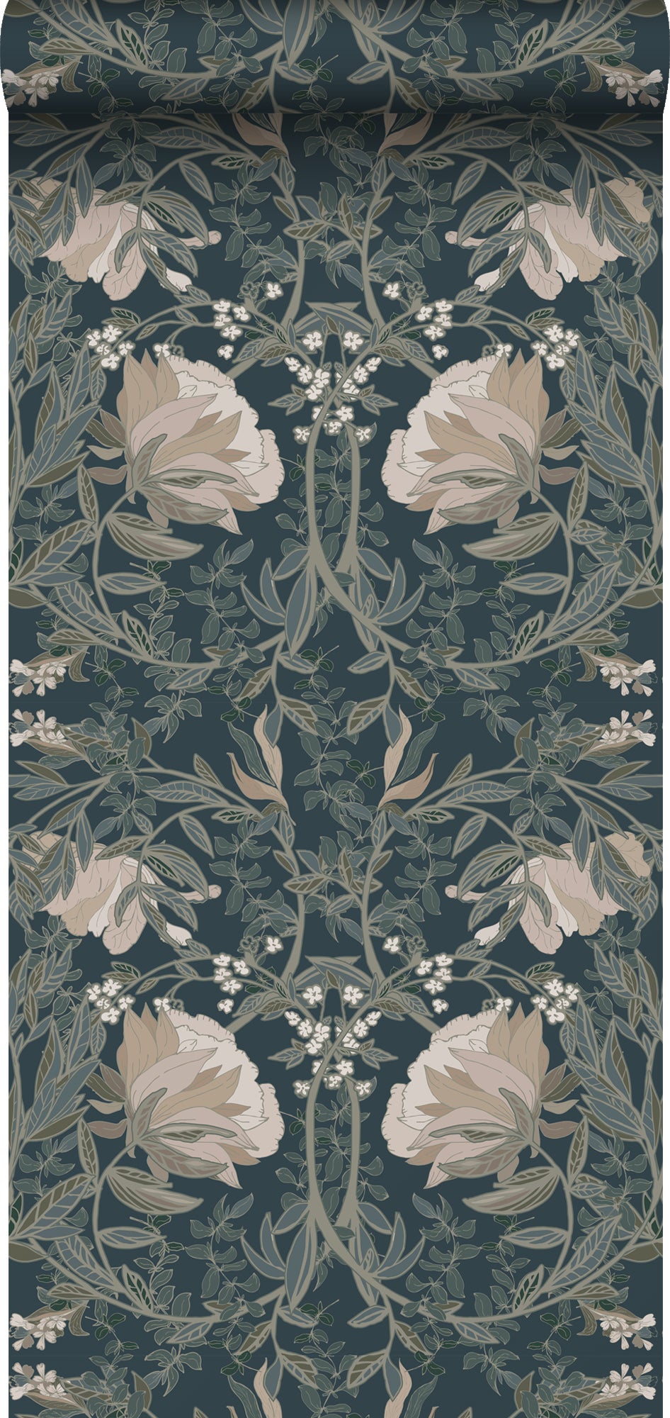 Papier peint fleurs vintage de style art nouveau bleu foncé - 53 cm x 10.05 m - ESTAhome