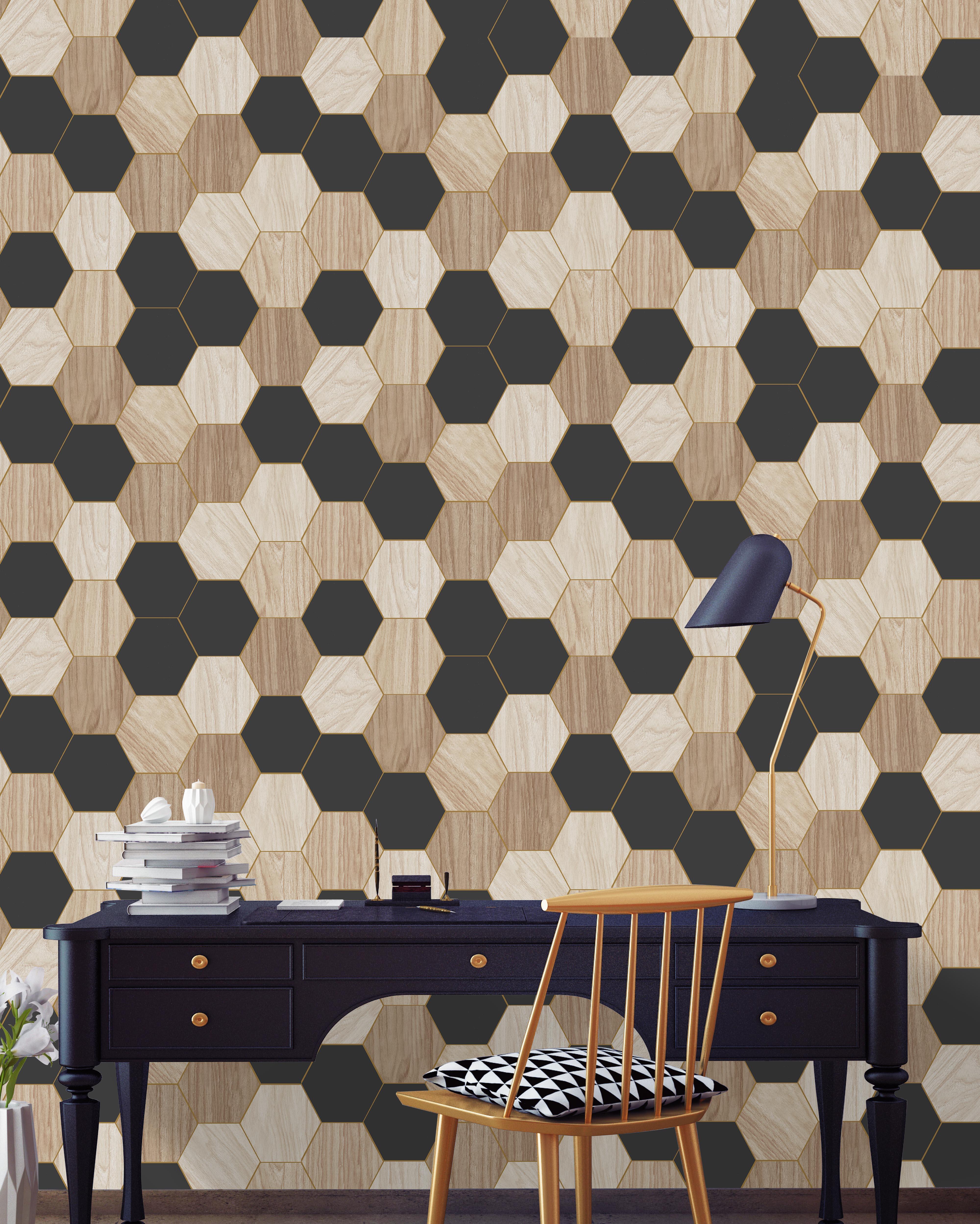 Apporter une touche contemporaine à votre intérieur avec ce papier peint vinyle imitation bois et ses motifs hexagones de couleur. Grâce à son support intissé, la pose est facile : il suffit d'encoller uniquement les murs, d'y dérouler votre lé de papier peint et le tour est joué !