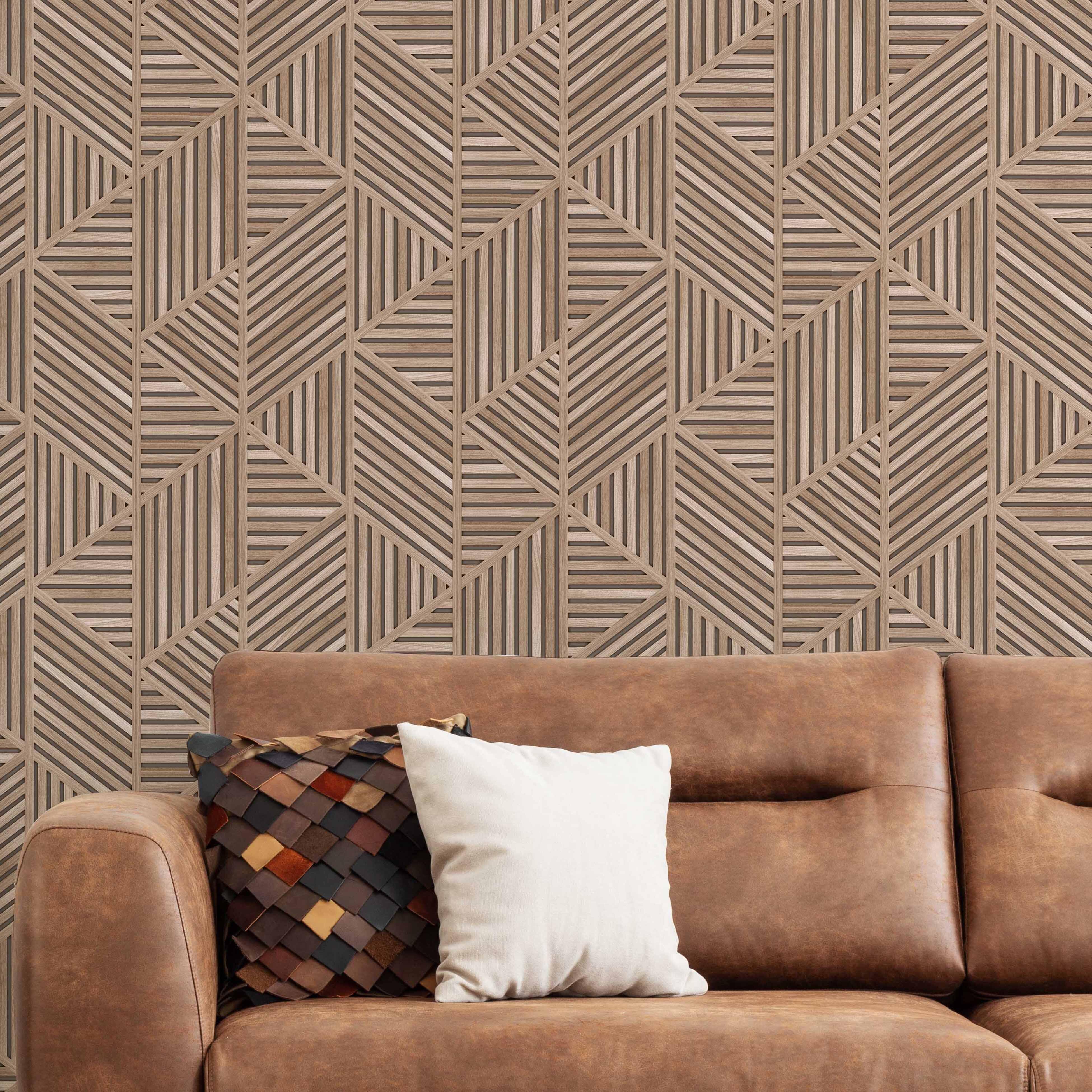 Un papier peint qui imite des tasseaux de bois à s'y méprendre ! Un esprit nature au rendu superbe qui donne du caractère et de l'authenticité à la pièce. Pose ultra-simple : on encolle le mur, on applique les lés, et le tour est joué !