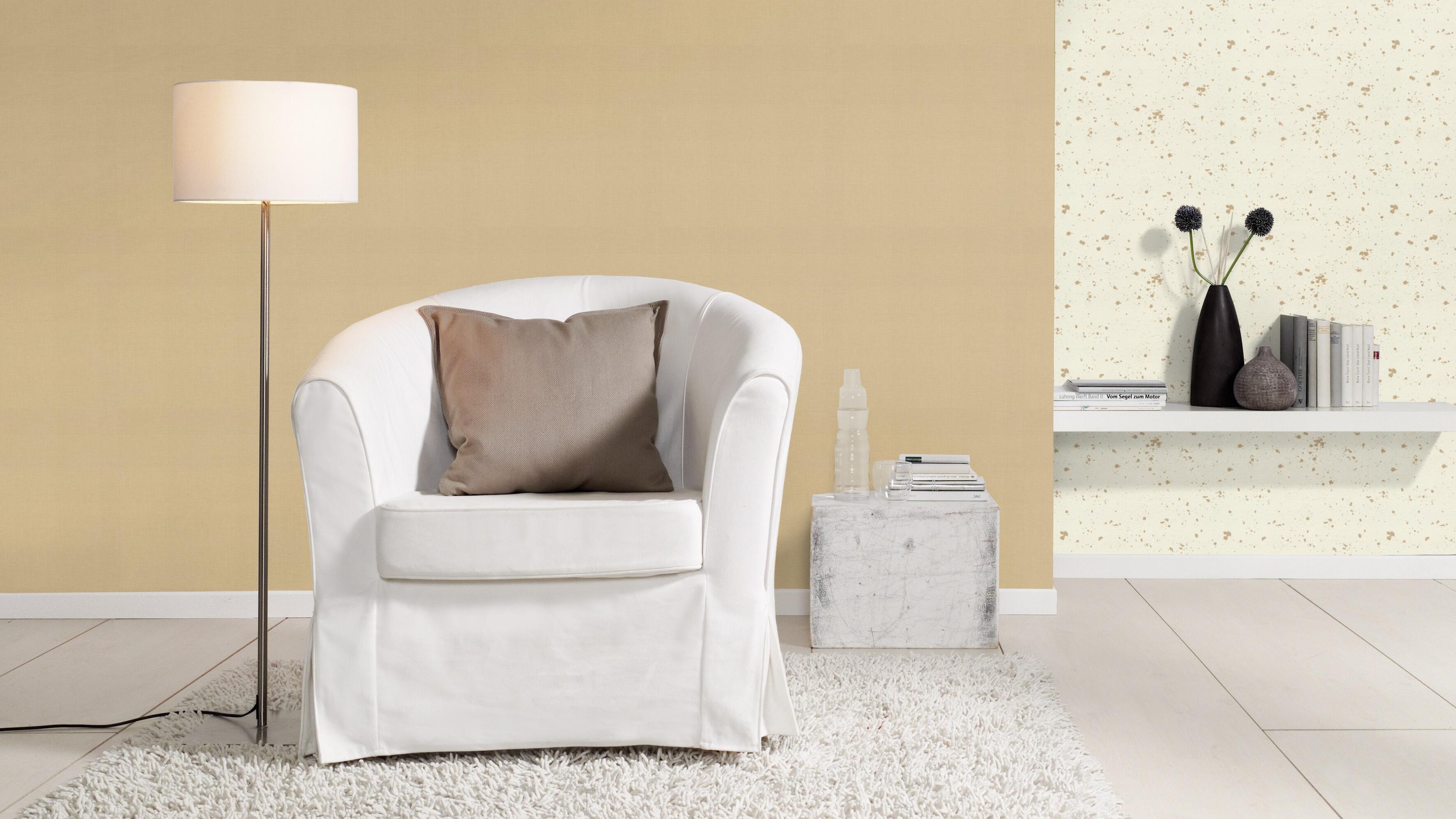 Papier peint uni doré, facile à poser : Il suffit de passer une couche de colle directement sur le mur, d'y dérouler votre lé de papier peint et le tour est joué !