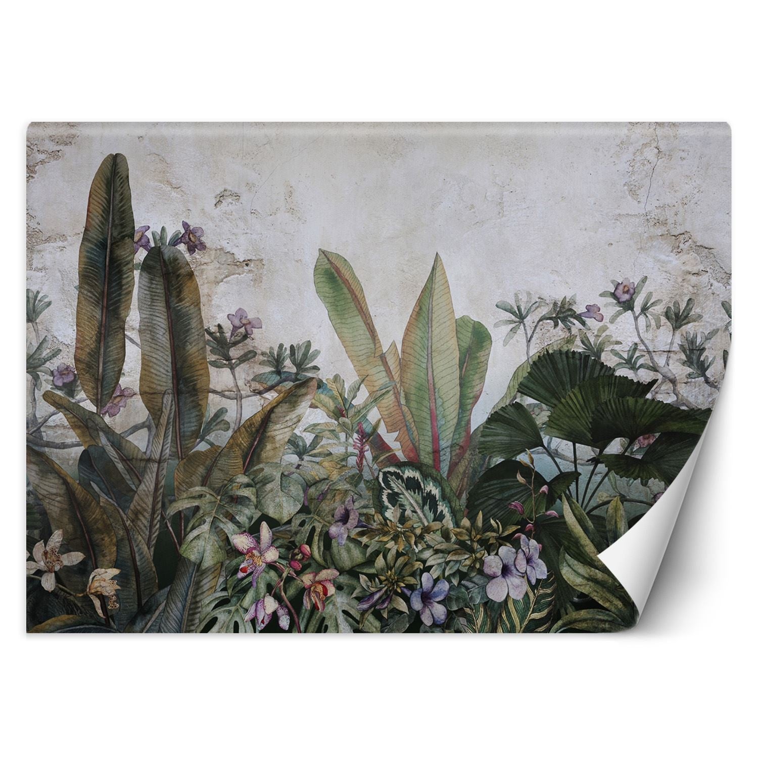 Papier peint mural, Monstera laisse un mur en béton - 200x140