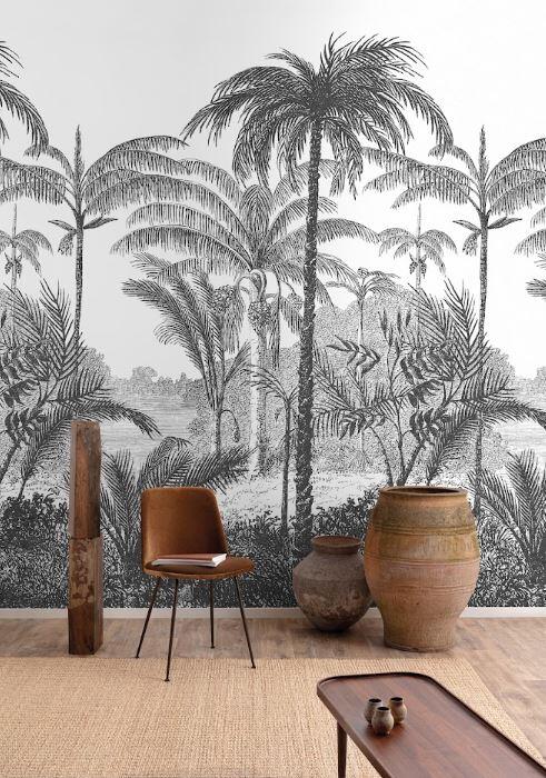 Papier peint panoramique Feuille Palm Scenery noir et blanc l.159 x H.280 cm
