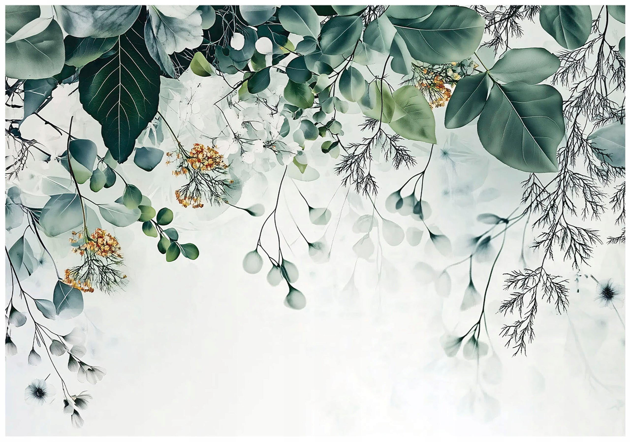 Papier Peint Panoramique Intissé Feuilles Vert Nature 400x280 cm - Colle Inclus - XXL Moderne Papier Peint pour Chambre Salon