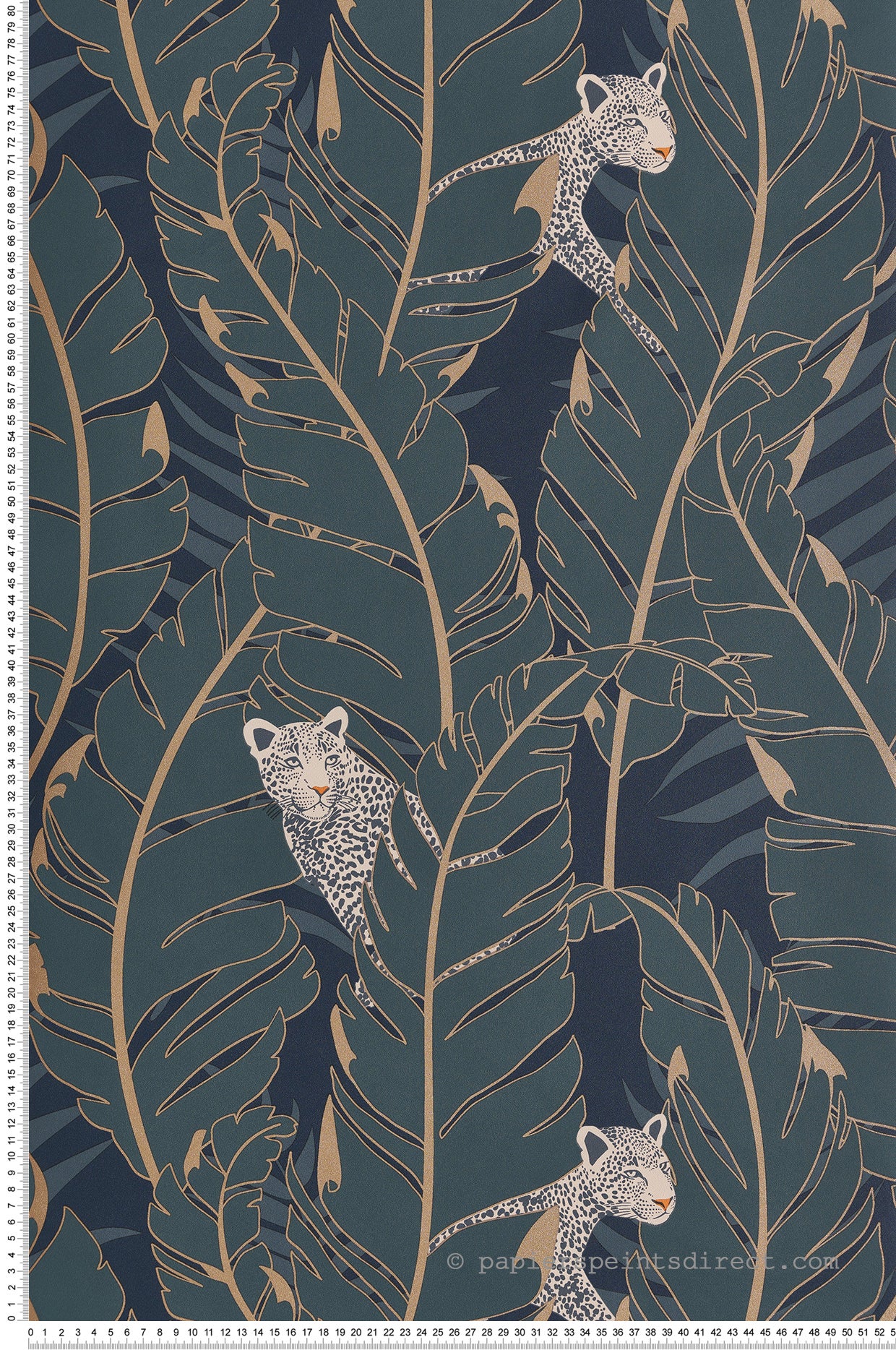 Ce modèle est un papier peint vinyle sur intissé (230 grammes/m2) de style motifs animaux|enfantin|nature|métallisé|jungle. Il est lessivable et brossable, strippable et bénéficie d'une bonne résistance à la lumière. Ses couleurs dominantes sont les bleus|les dorés.