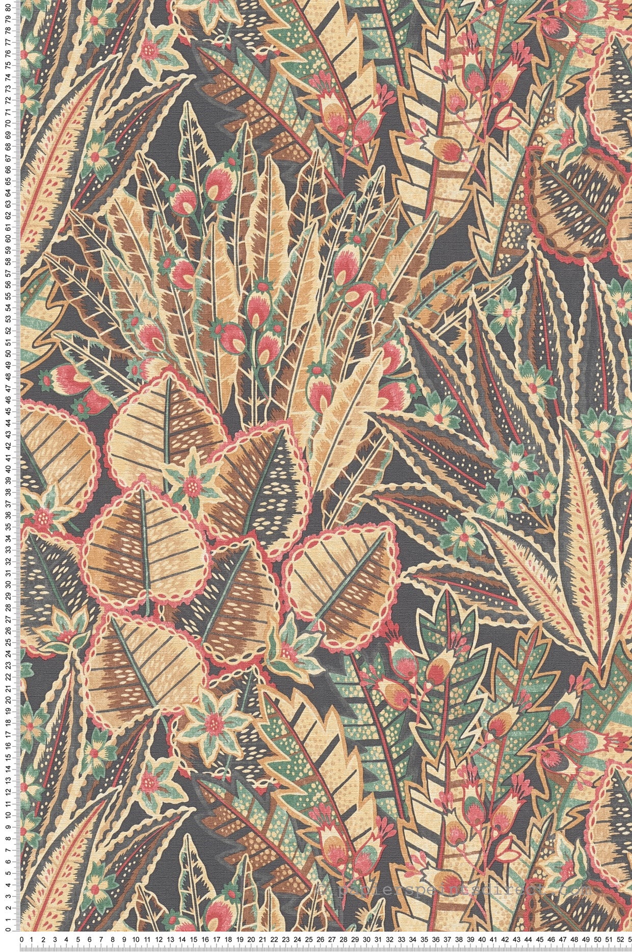 Ce modèle est un papier peint vinyle sur intissé (280 grammes/m2) de style motifs|fleurs nature|fleurs|jungle|ethnique. Il est lessivable et brossable, strippable et bénéficie d'une bonne résistance à la lumière. Ses couleurs dominantes sont les beiges|les marron|les rouges|les noirs|multicouleurs.