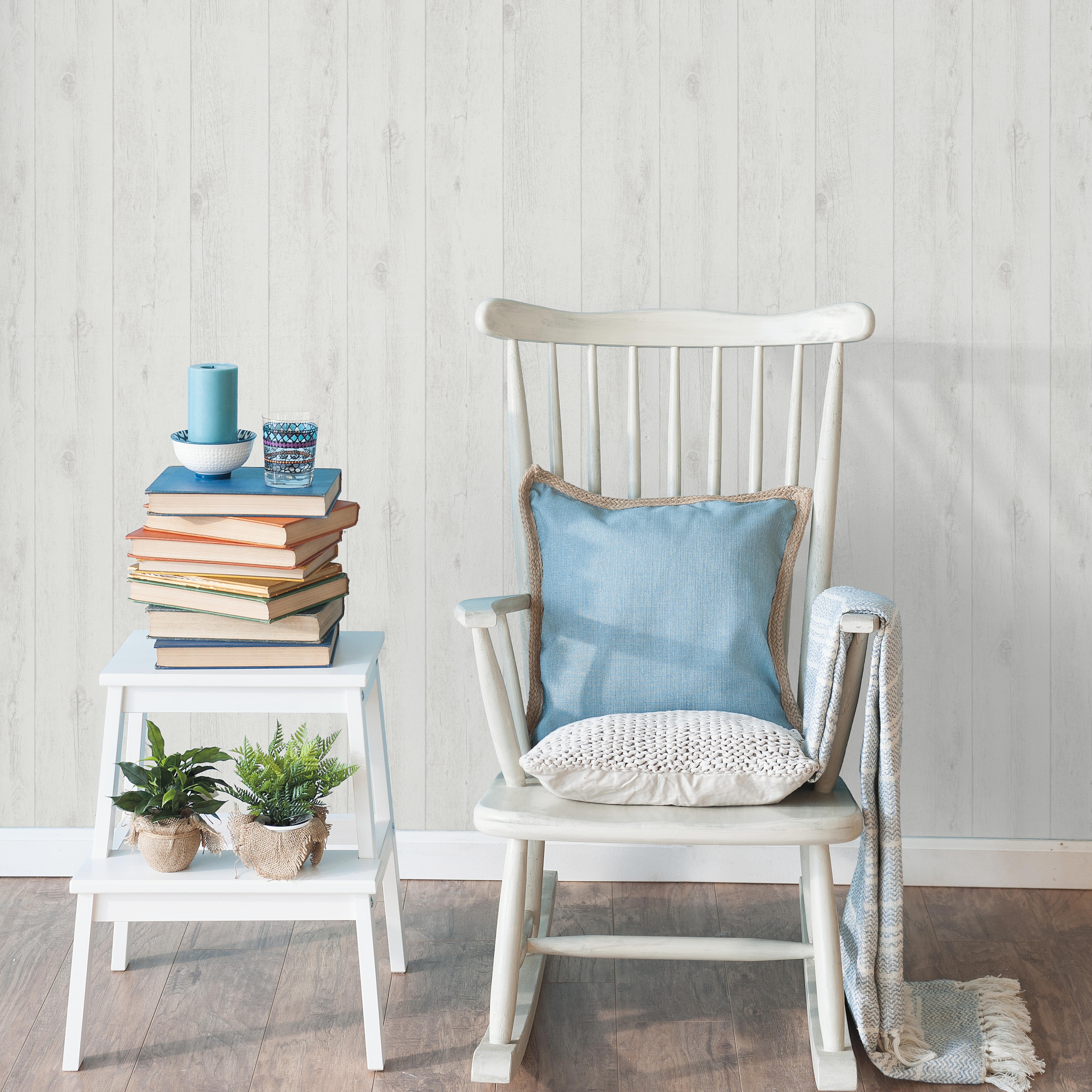 Le papier peint imitation planches de bois peintes en blanc apportera une touche moderne et naturelle dans n'importe qu'elle pièce de votre intérieur. Grâce à son support intissé, la pose est facile : il suffit d'encoller uniquement les murs, d'y dérouler votre lé de papier peint et le tour est joué.