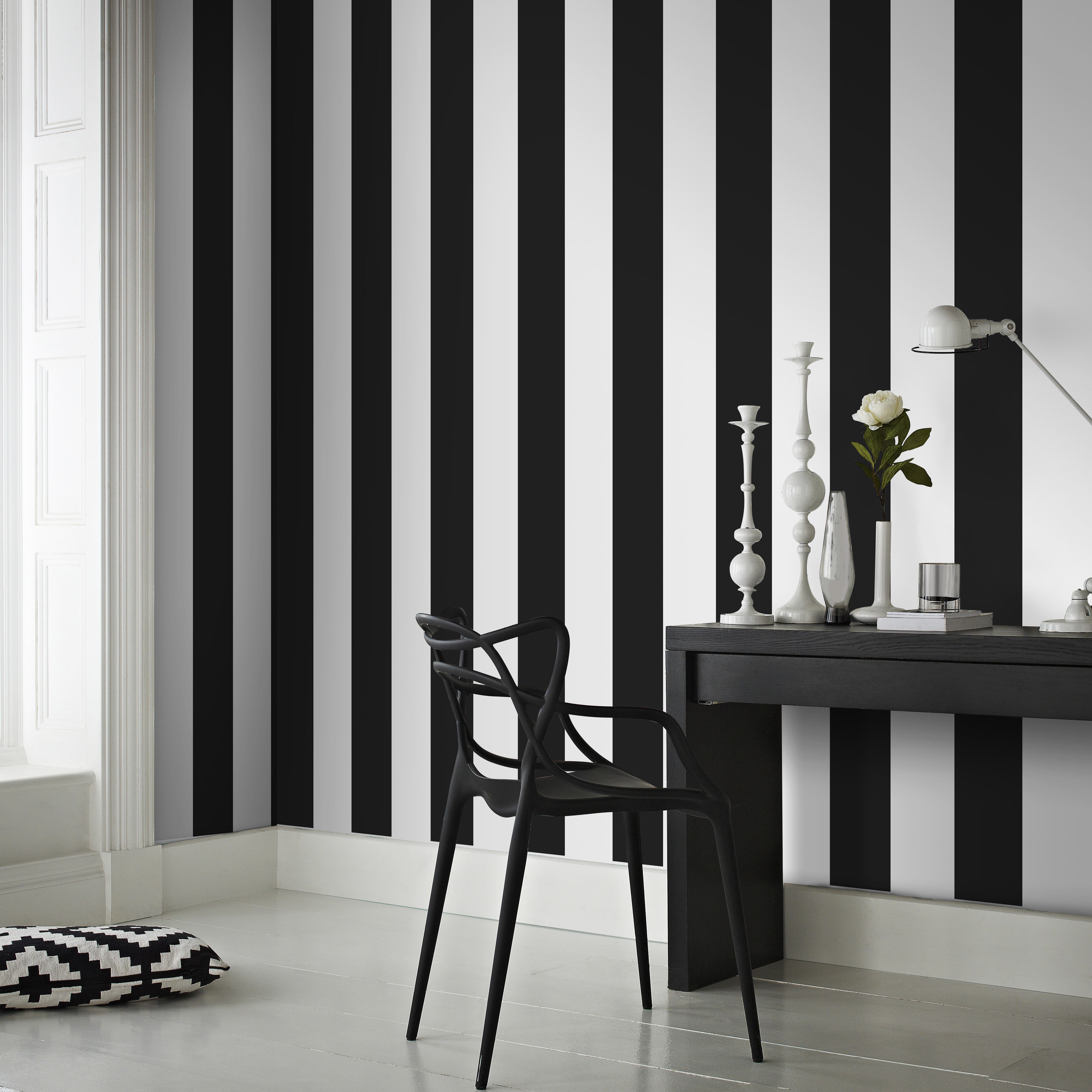 Ce papier peint à rayures verticales noires et blanches apportera une touche design à votre intérieur. Il sera idéal pour agrandir l'espace et donner de la hauteur à votre pièce.