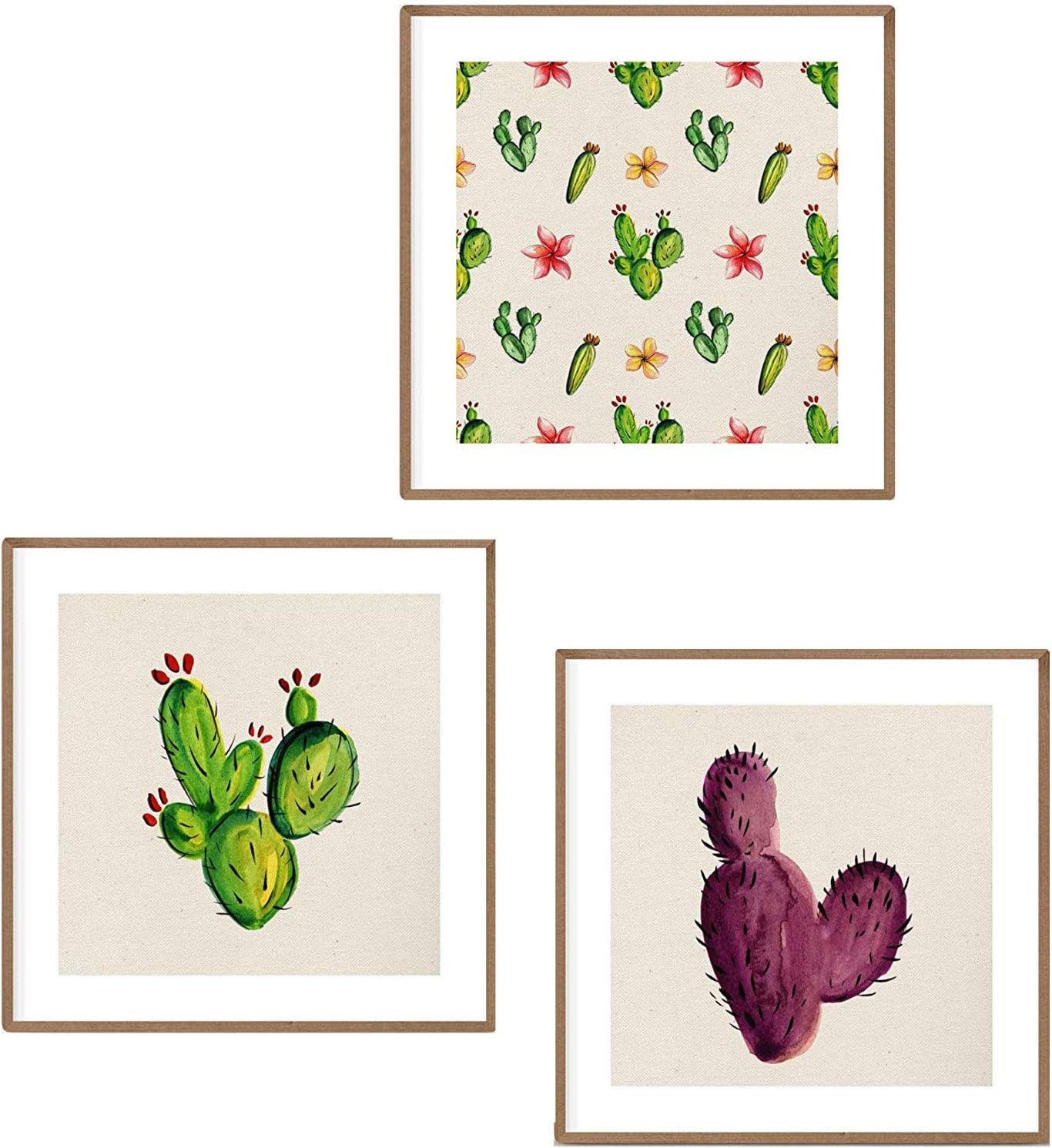 Paquet De Trois Feuilles De Cactus. Affiches Carrées Avec Images Estampillées. Donnez Une Touche Verte À Votre Cadre Noir À La Maison