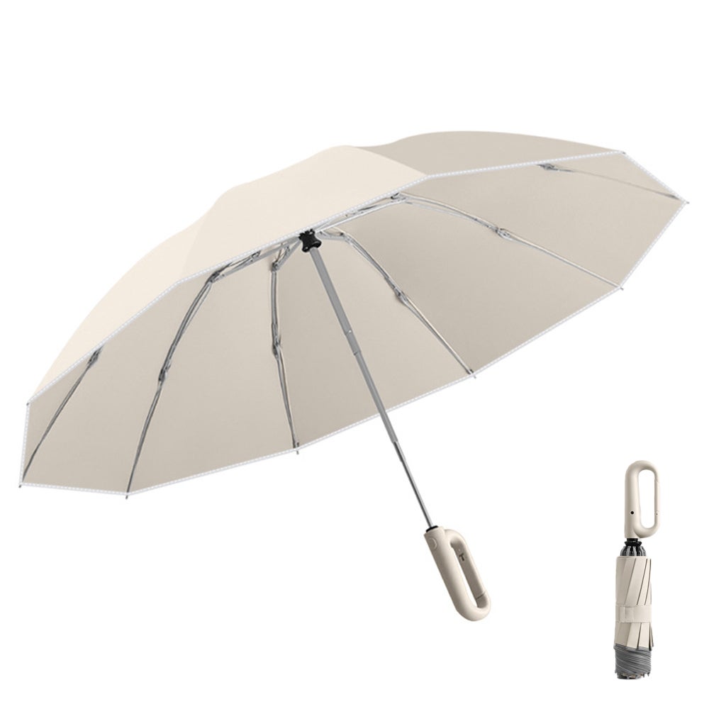 Parapluie entièrement automatique avec poignée à mousqueton, parapluie pliable inversé à 10 baleines