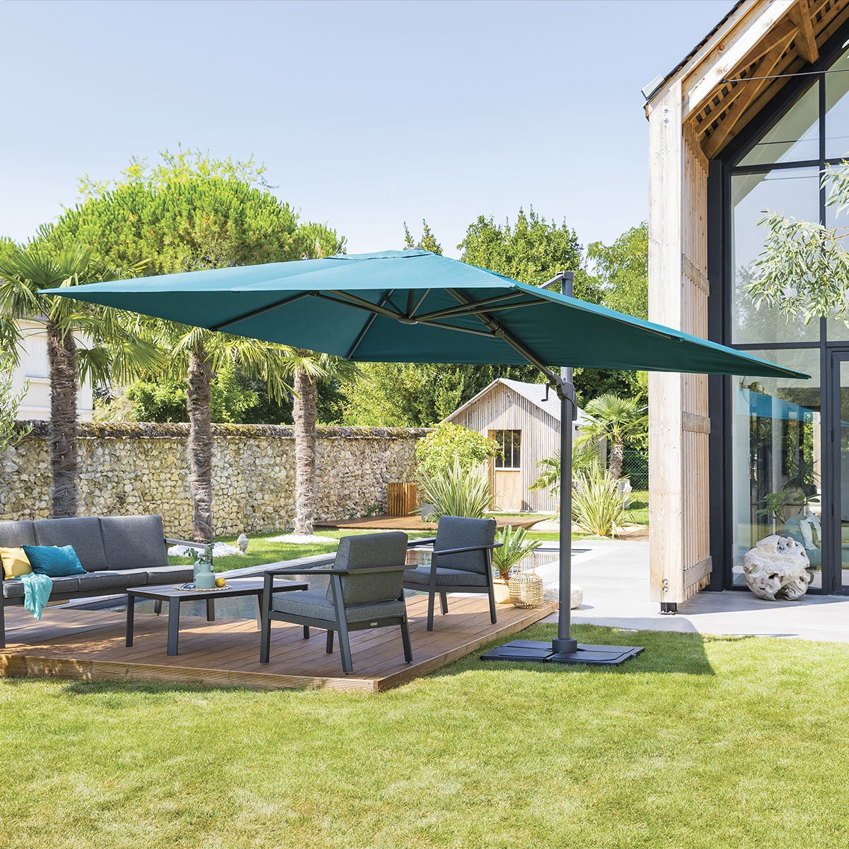 Parasol déporté rectangulaire inclinable Éléa Bleu canard - Hespéride