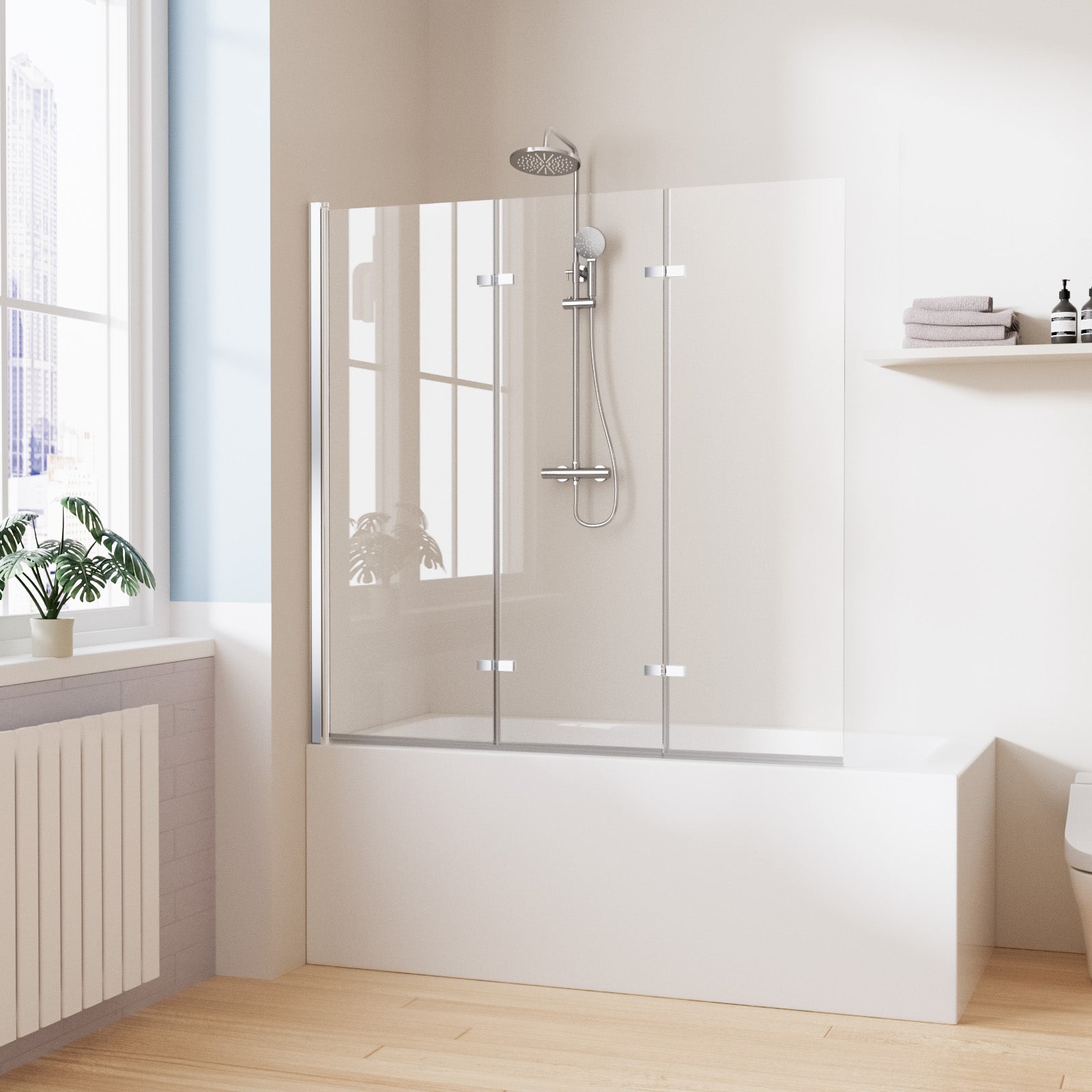 Pare baignoire Pivotant - 3 verres pliables & Profilés chromés