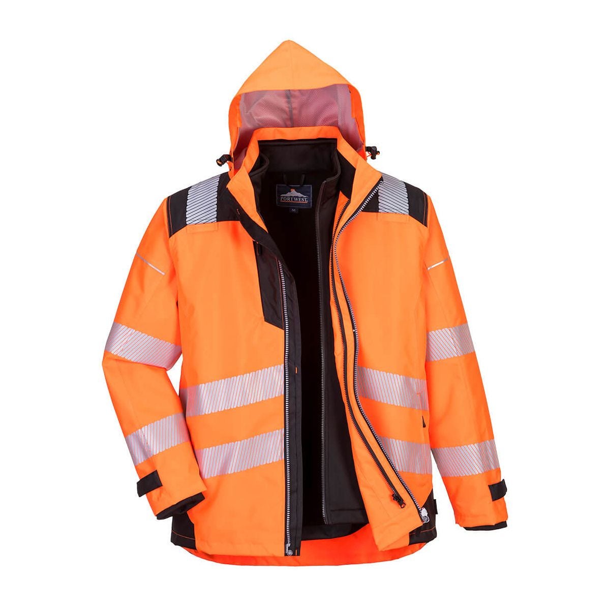 Parka PW3 3 en 1 haute visibilité Orange Noir - Portwest - Taille 4XL