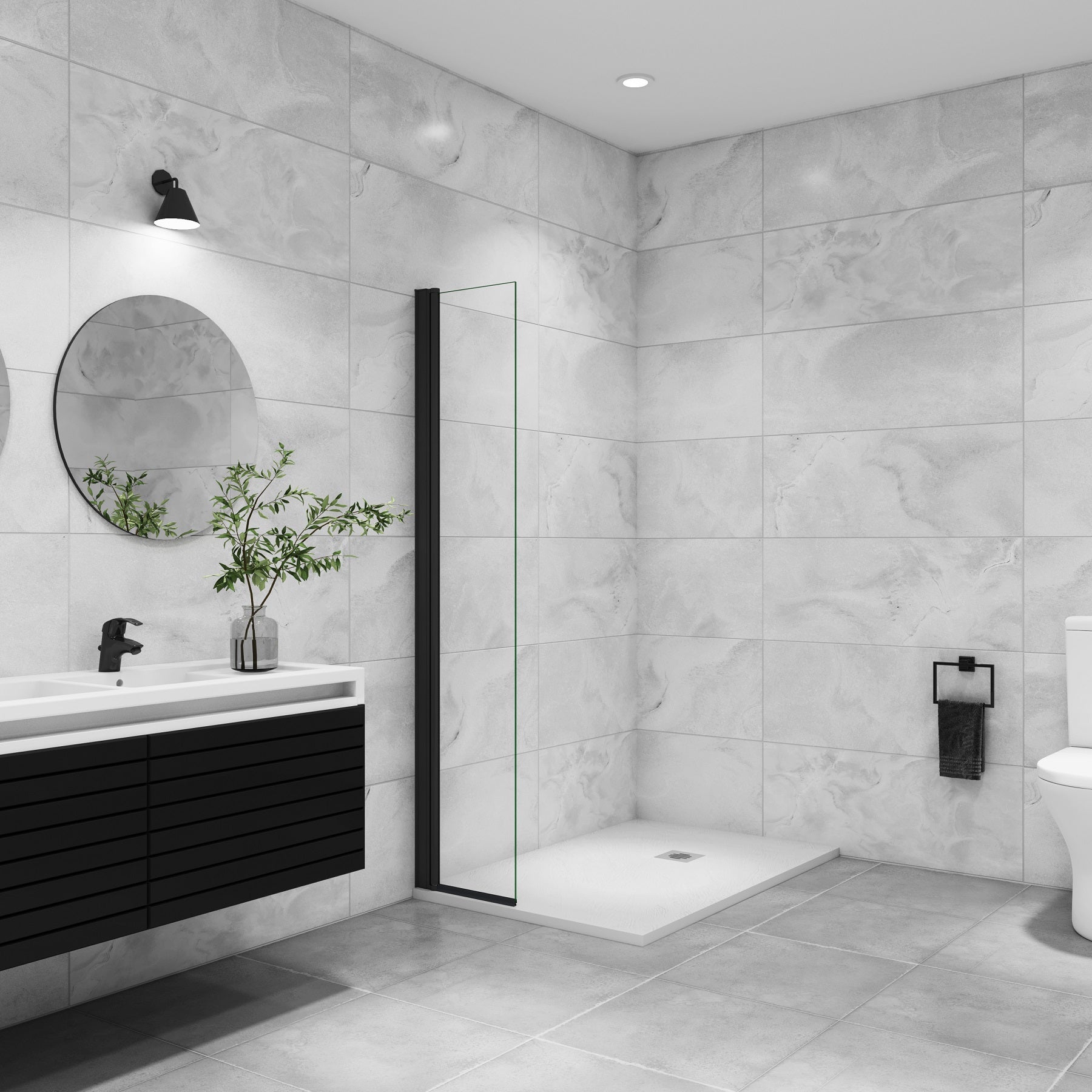 - 8mm verre clair de sécurité et anticalcaire - paroi de douche pivotante, finition Noir mat