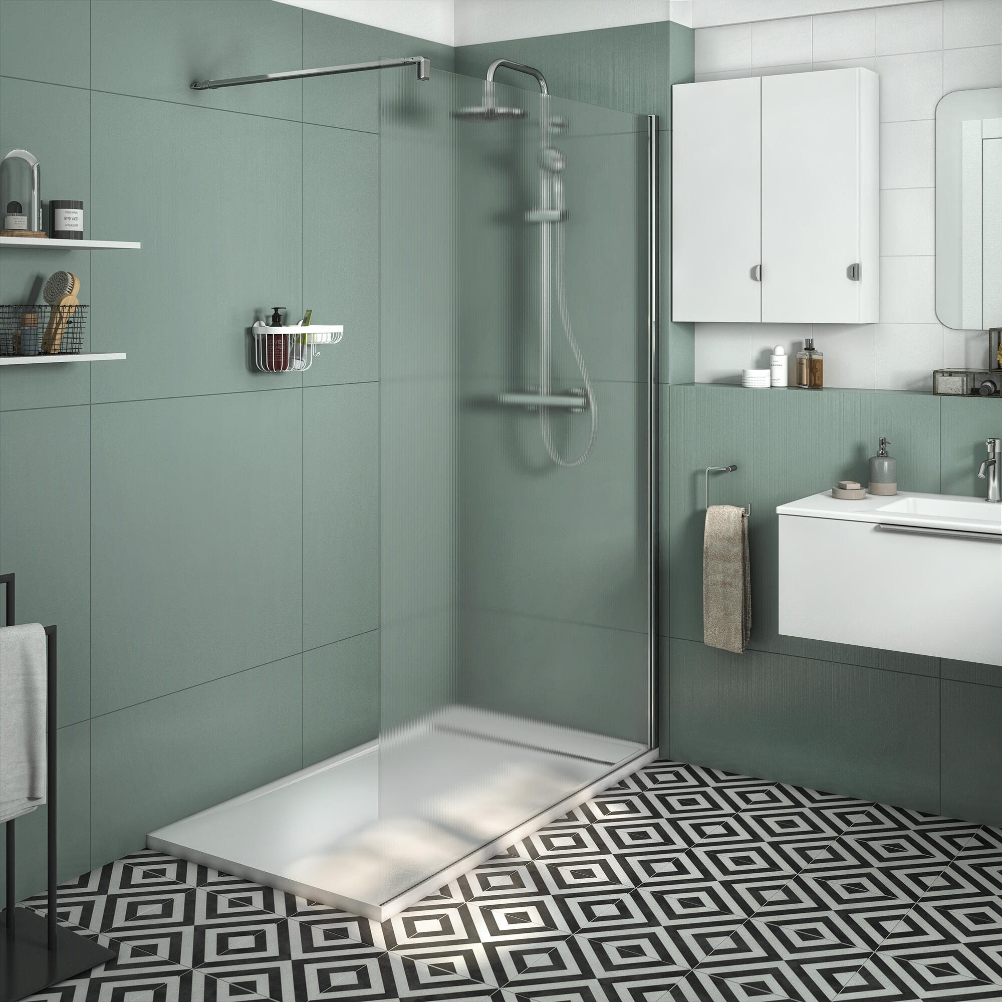 Paroi de douche à l'italienne verre rainuré, l.120 cm, Ep.8 mm chromé Neo