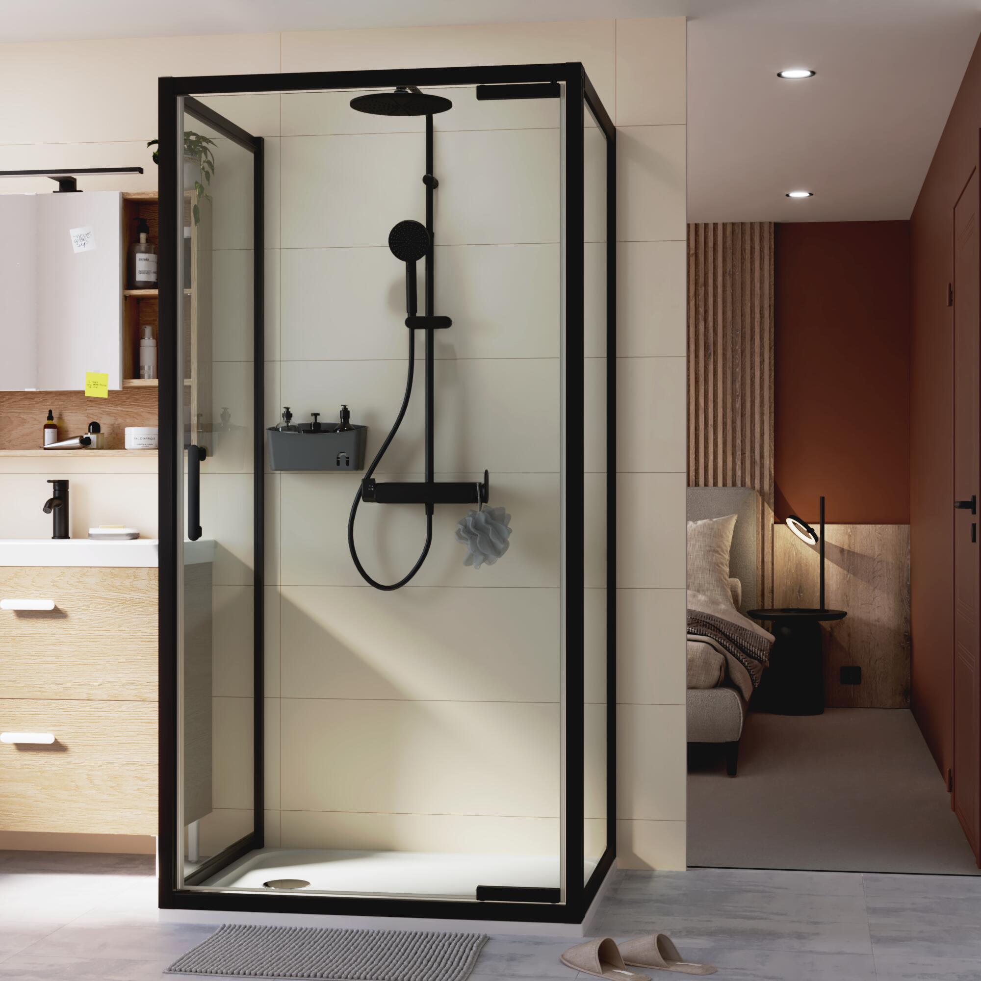 Paroi latérale verre transparent, l.80 x H.190 cm noir, Easy