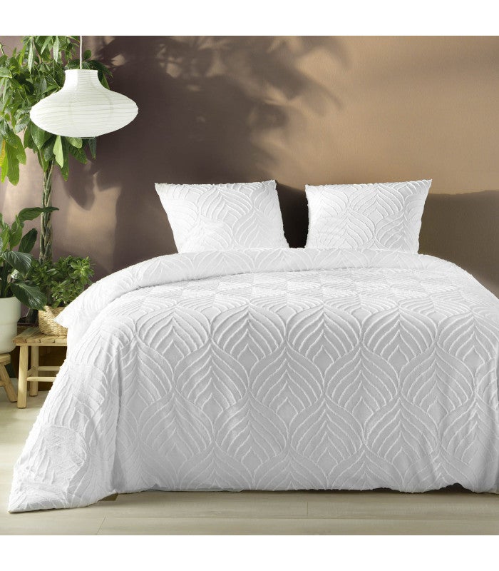 Parure 3 pièces 240x260cm tufté blanc - 240x260cm - Blanc