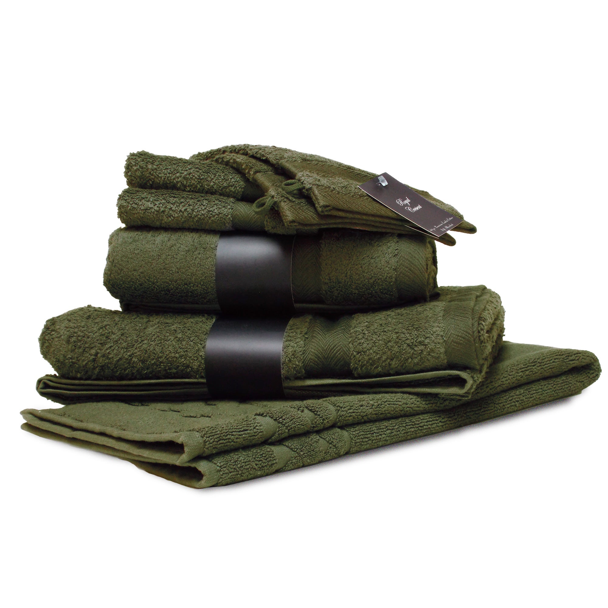 PARURE DE BAIN 7 PIECES, 100% COTON - ROYAL CRESENT VERT BOUTEILLE
