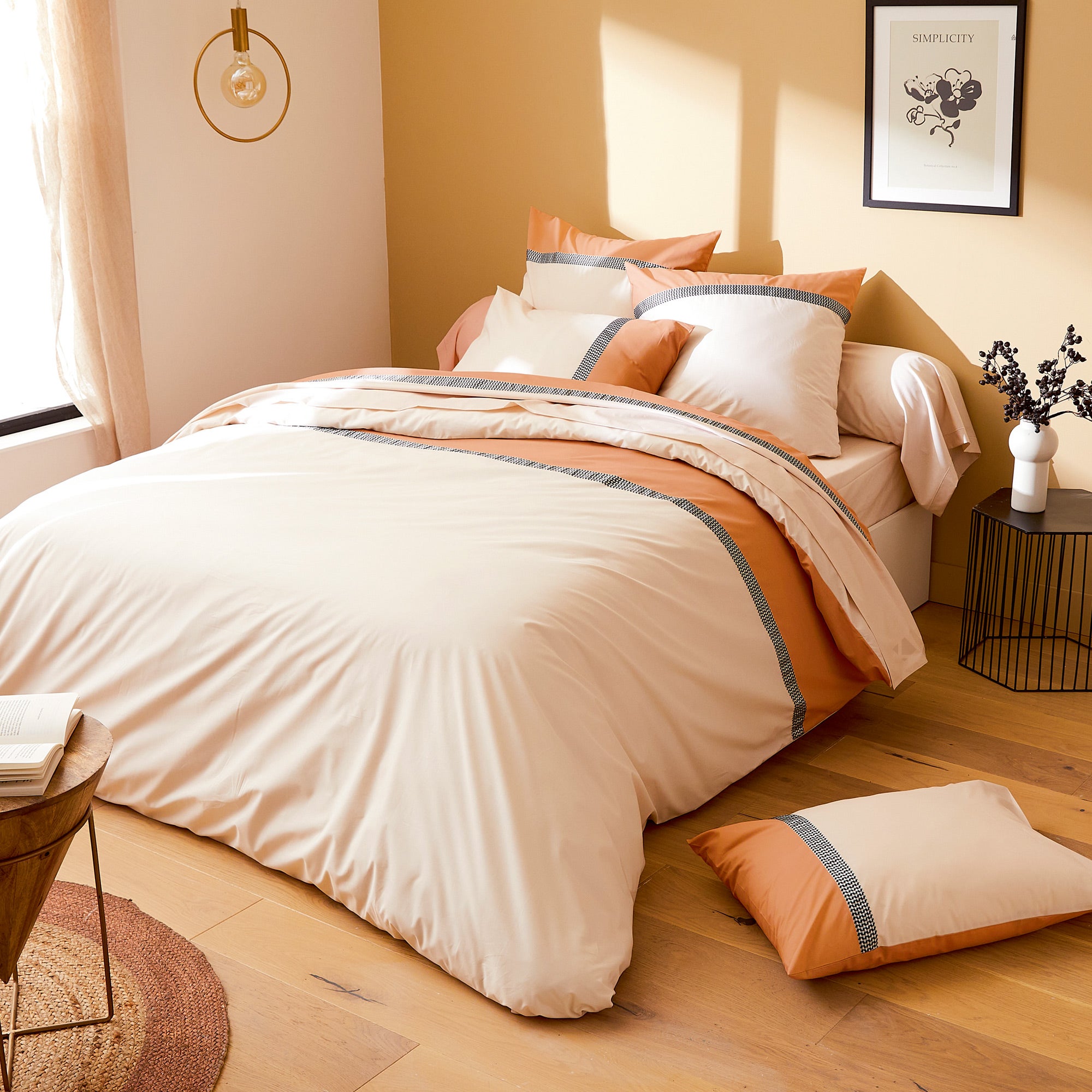 Parure de lit 240x220 cm 50x70 cm percale MACASSAR Cognac 3 pièces