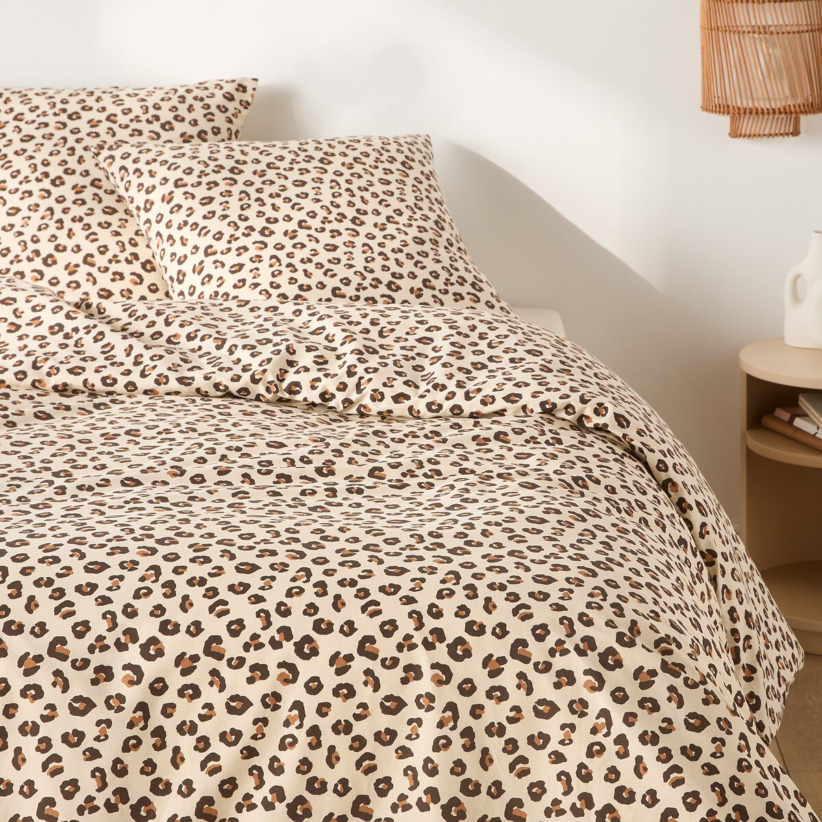 Parure de lit coton, taie carrée, Leopold - Imprimé léopard - 140 x 200 cm