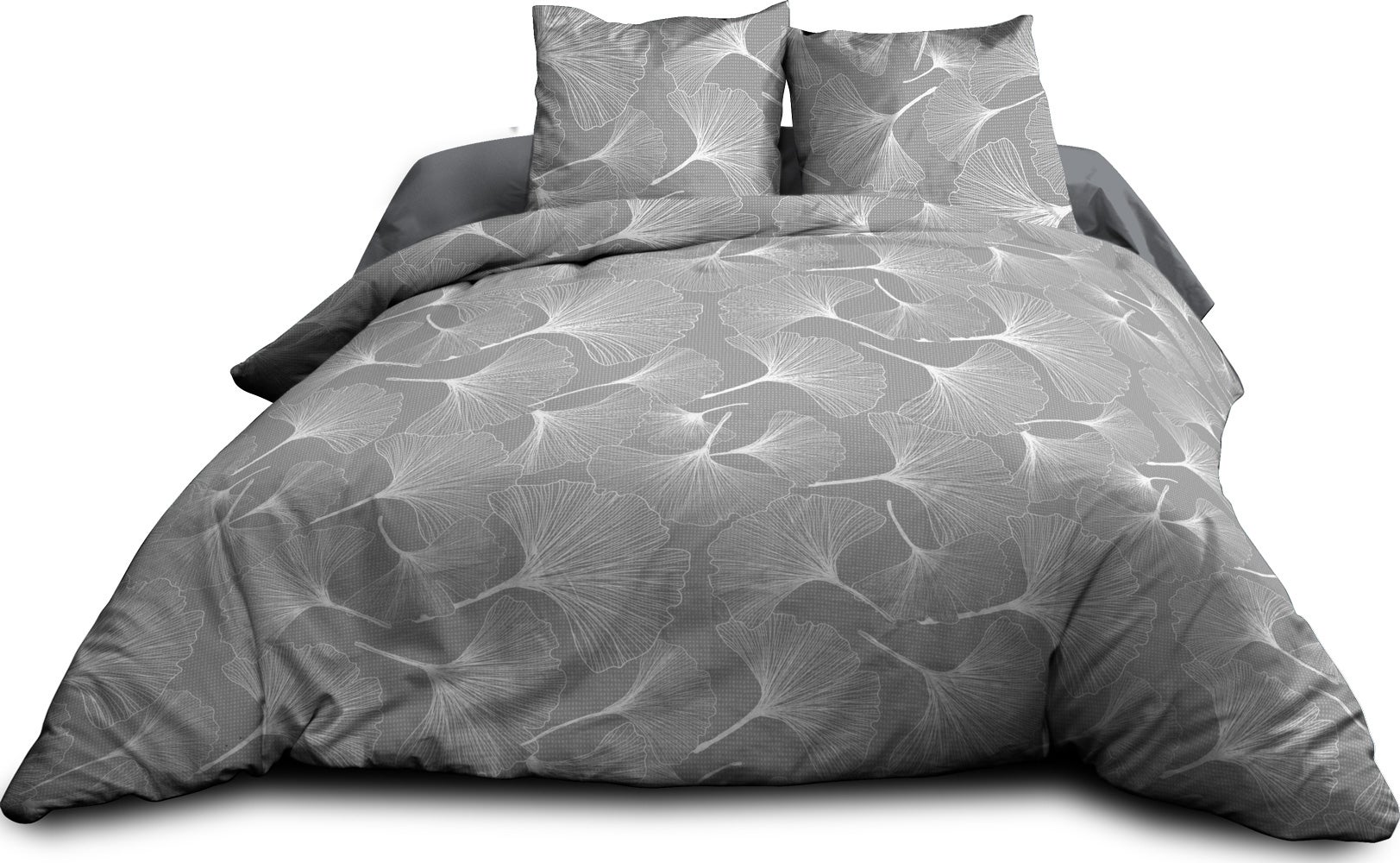 Parure Drap plat + drap-housse 140x190 + 2 T - Pur coton 57 fils - Biloba gris