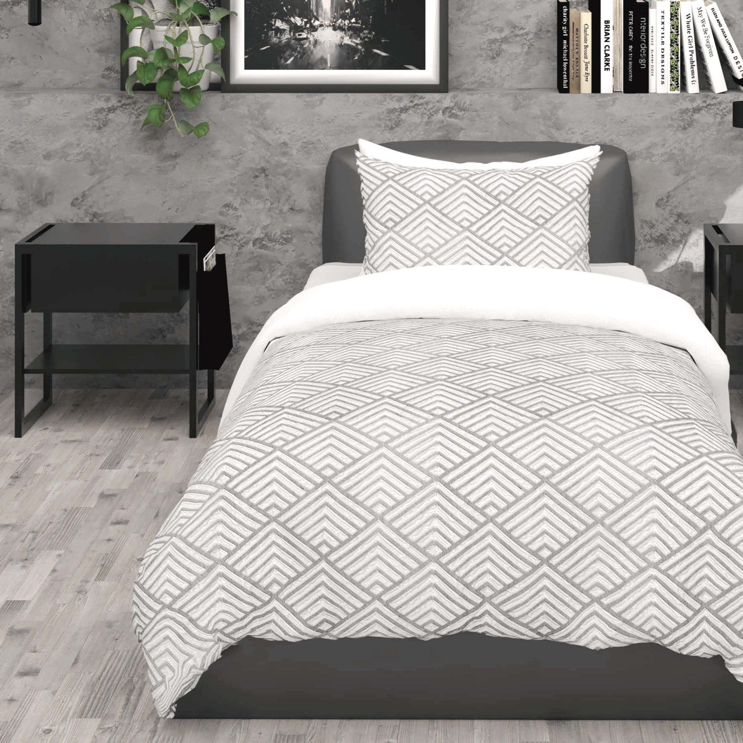 Parure housse de couette 3D microfibre 140x200 cm LAYA gris, par Soleil d'Ocre
