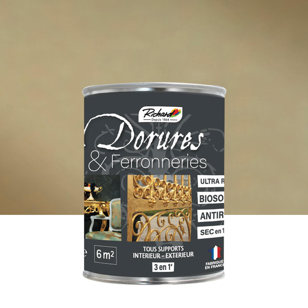 Peinture Dorure prêt à l'emploi. Multi supports (bois-métal-plastiques…). Extérieur et intérieure. Technologie DTM. Formule 3 en 1 (primaire d'accrochage + peinture + top coat en 1 formule). Sans solvant. Disponible en 125 ml et 500 ml et 8 teintes