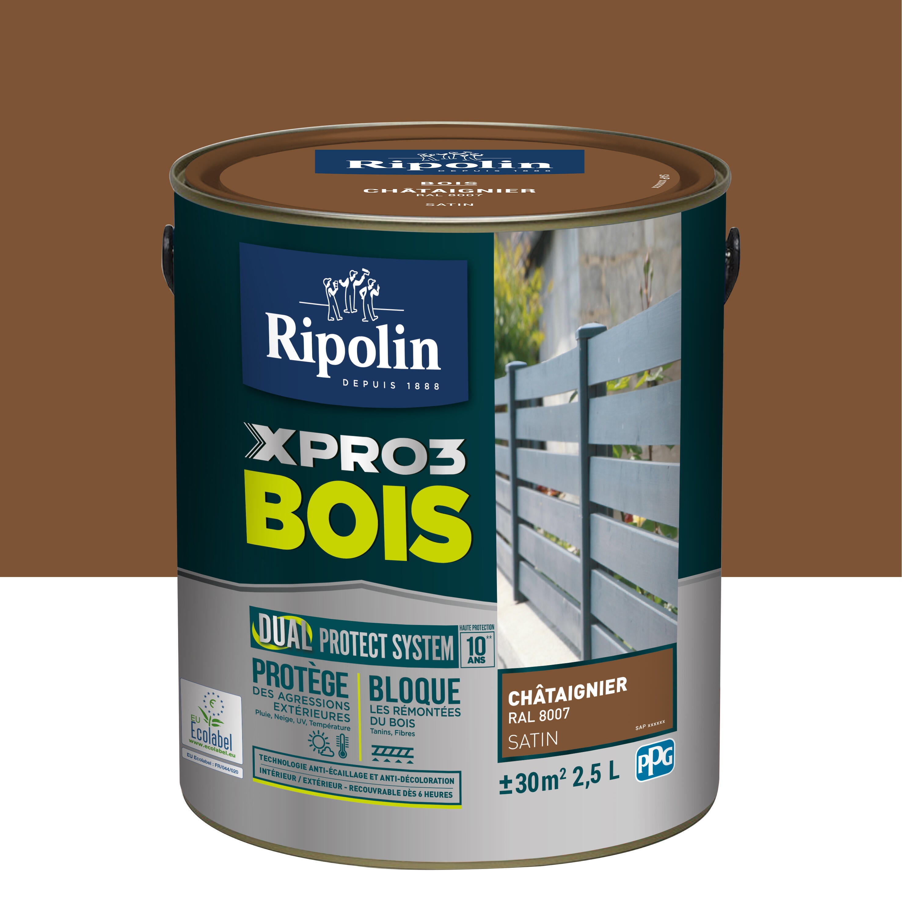 Peinture extérieure bois Xpro3 RIPOLIN chataigner satiné 2.5l