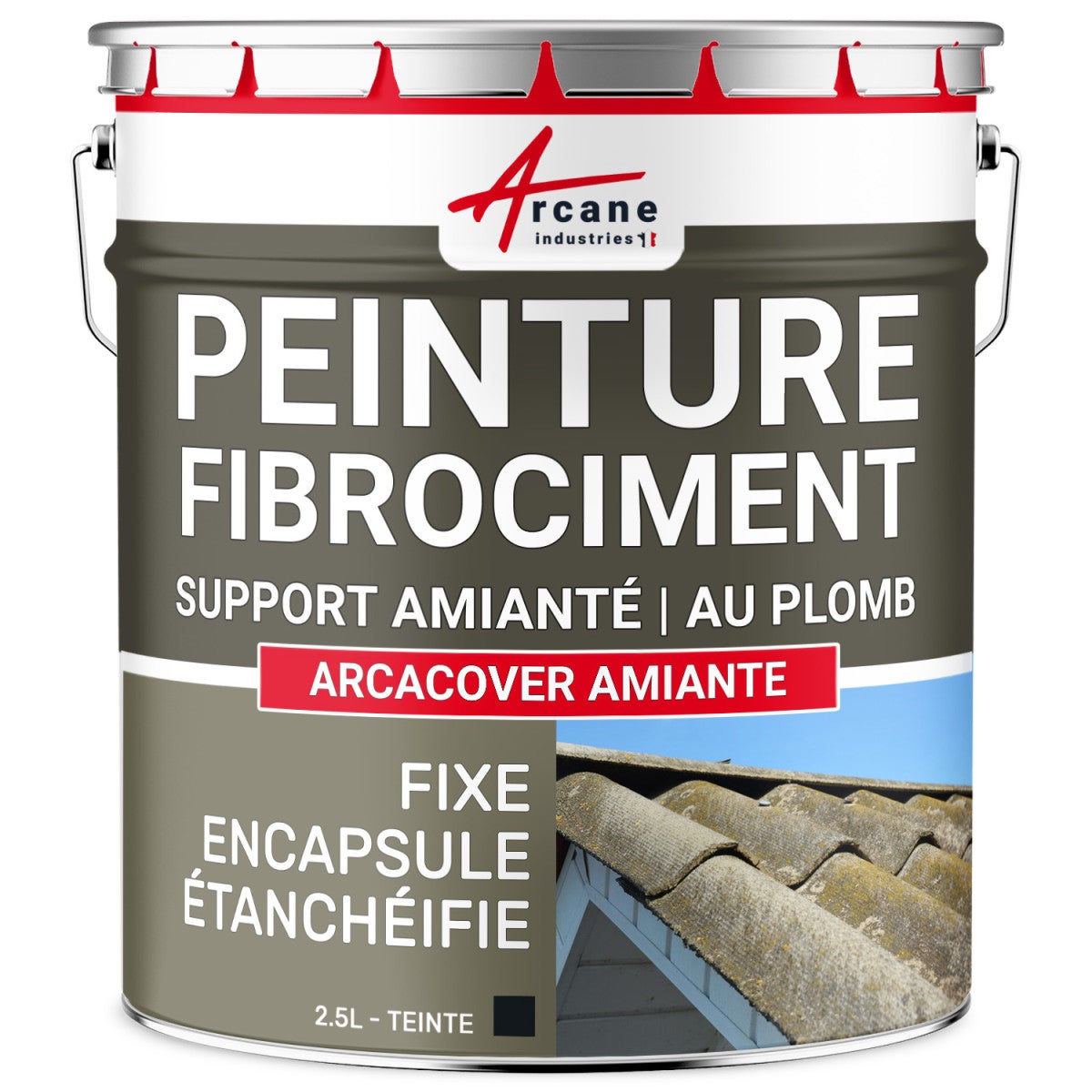Peinture fibro ciment pour encapsulage support amiante / plomb : ARCACOVER AMIANTE. Ardoise - 2.5 L - ARCANE INDUSTRIES