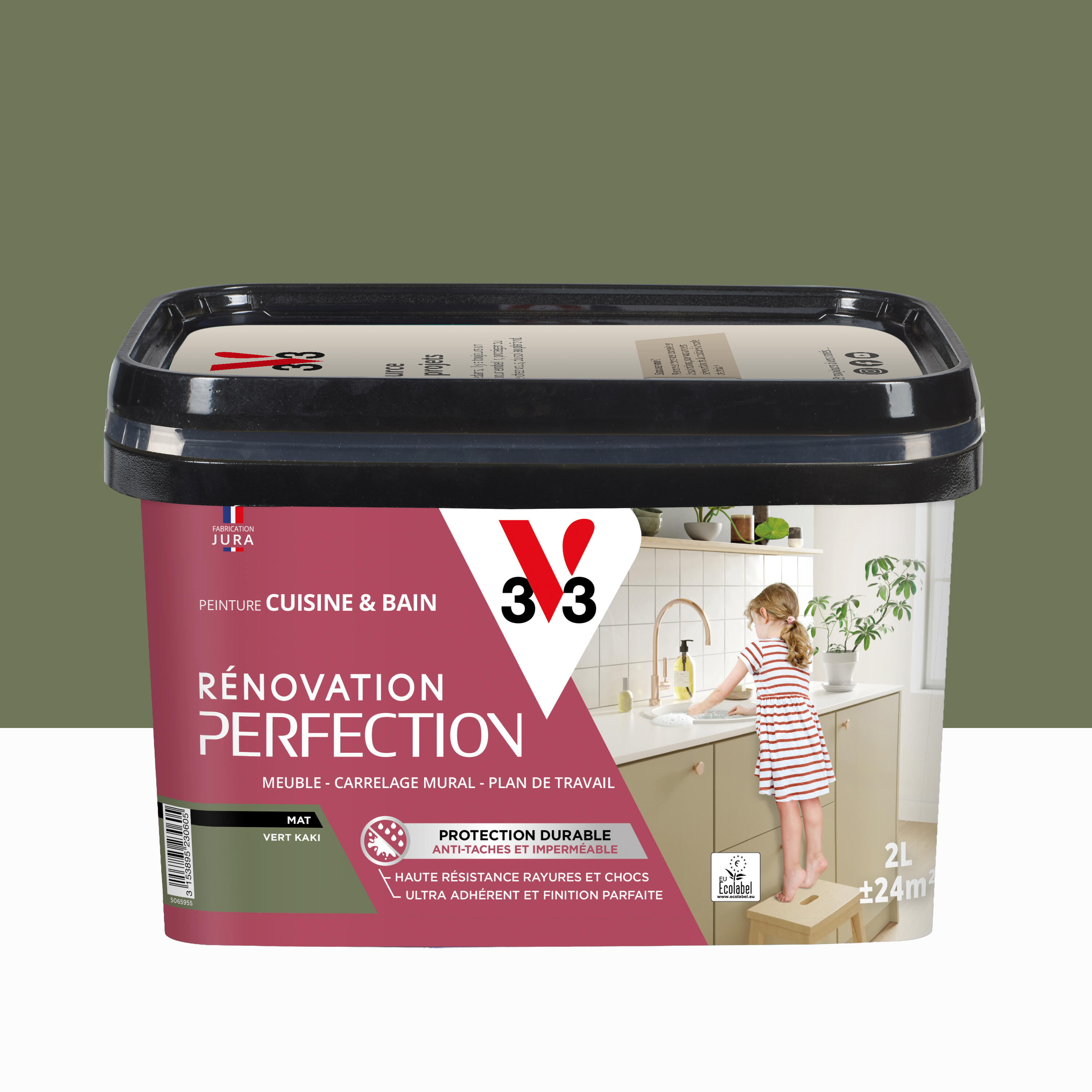 Initialement publié sur Peinture meuble vert kaki mat V33 Rénovation cuisine et bain 0.75l
