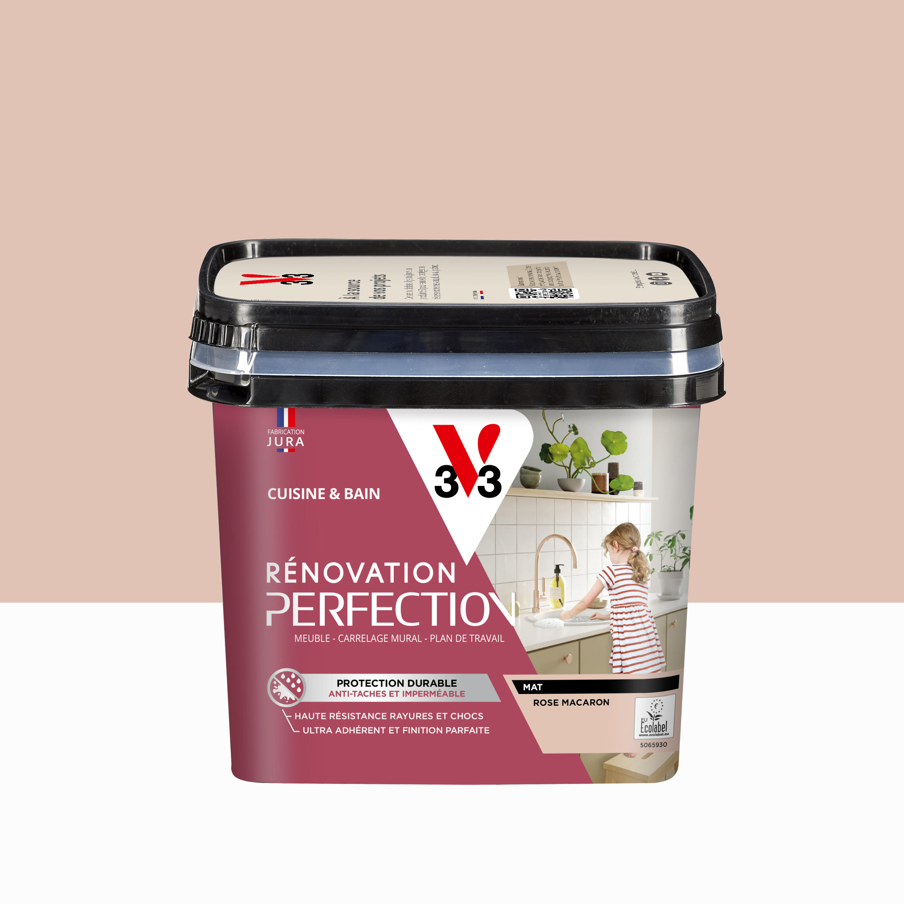 Peinture meuble rose macaron mat V33 Rénovation cuisine et bain 0.75l