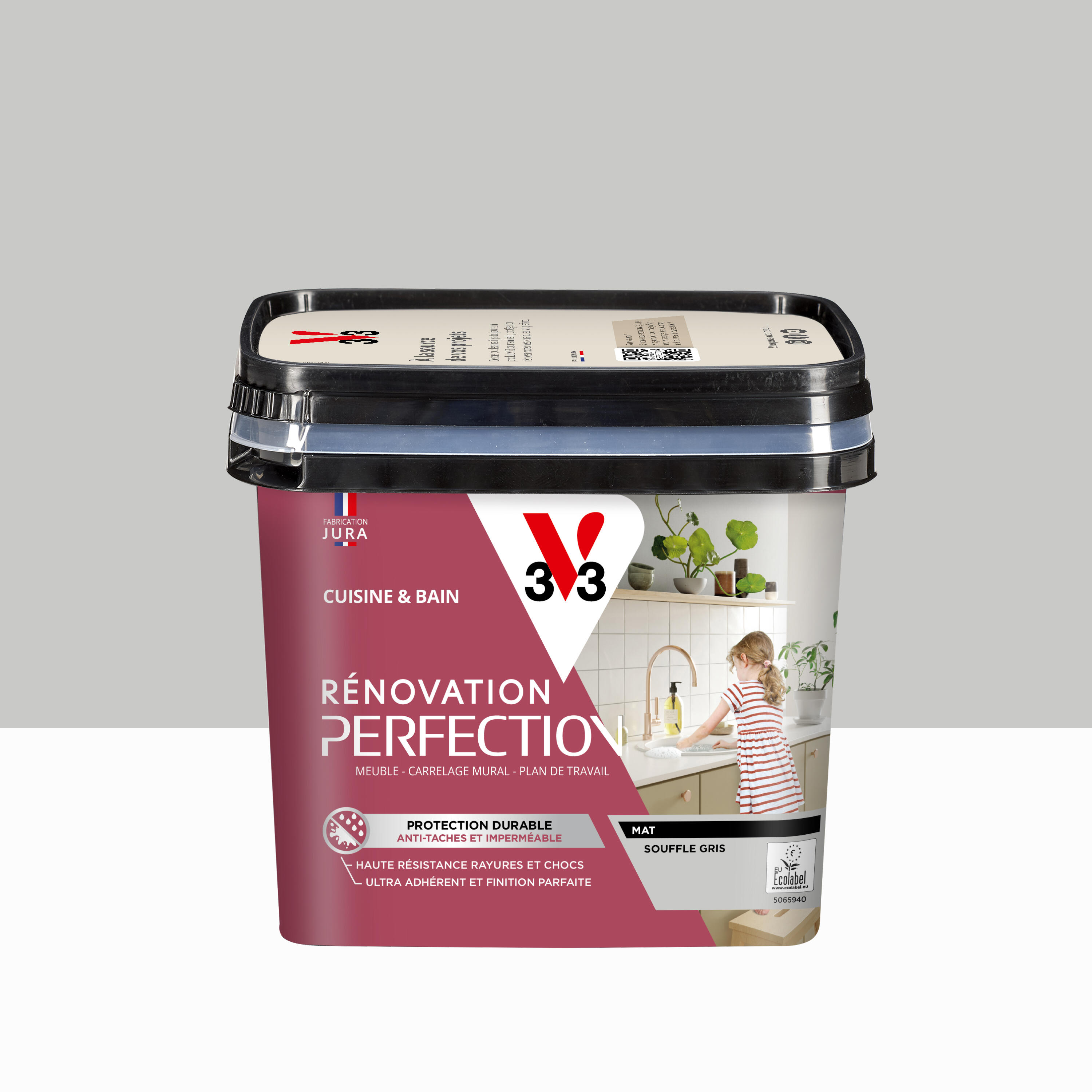 Initialement publié sur Peinture meuble, carrelage souffle gris mat V33 Rénovation cuisine et bain 2L