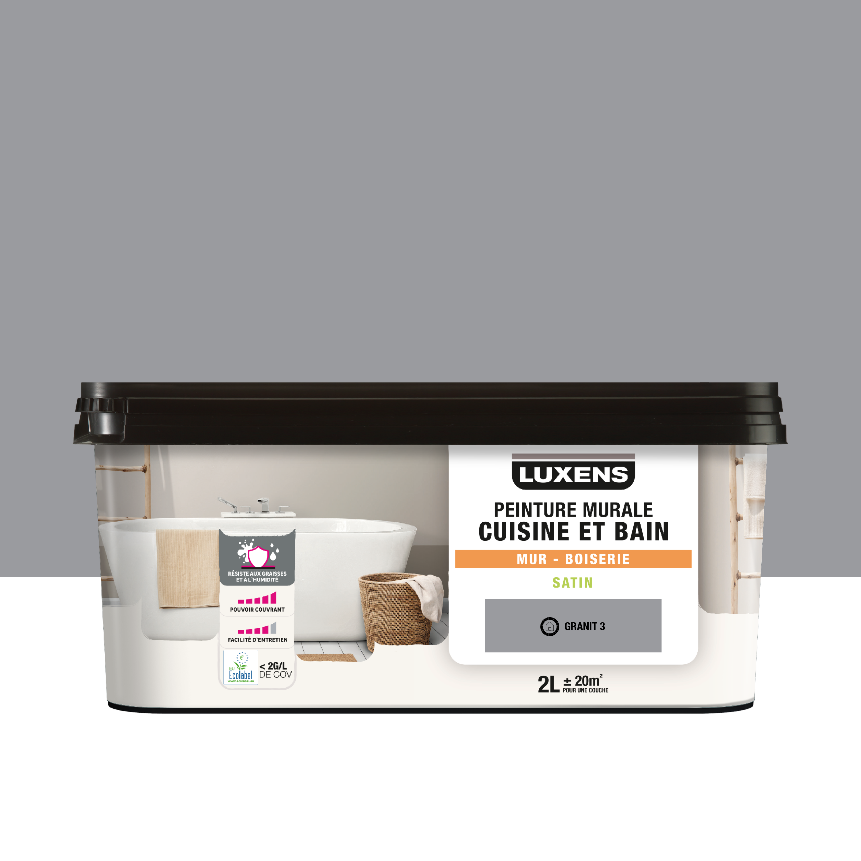 Peinture mur, boiserie granit 3 satin LUXENS Cuisine et bain 2L