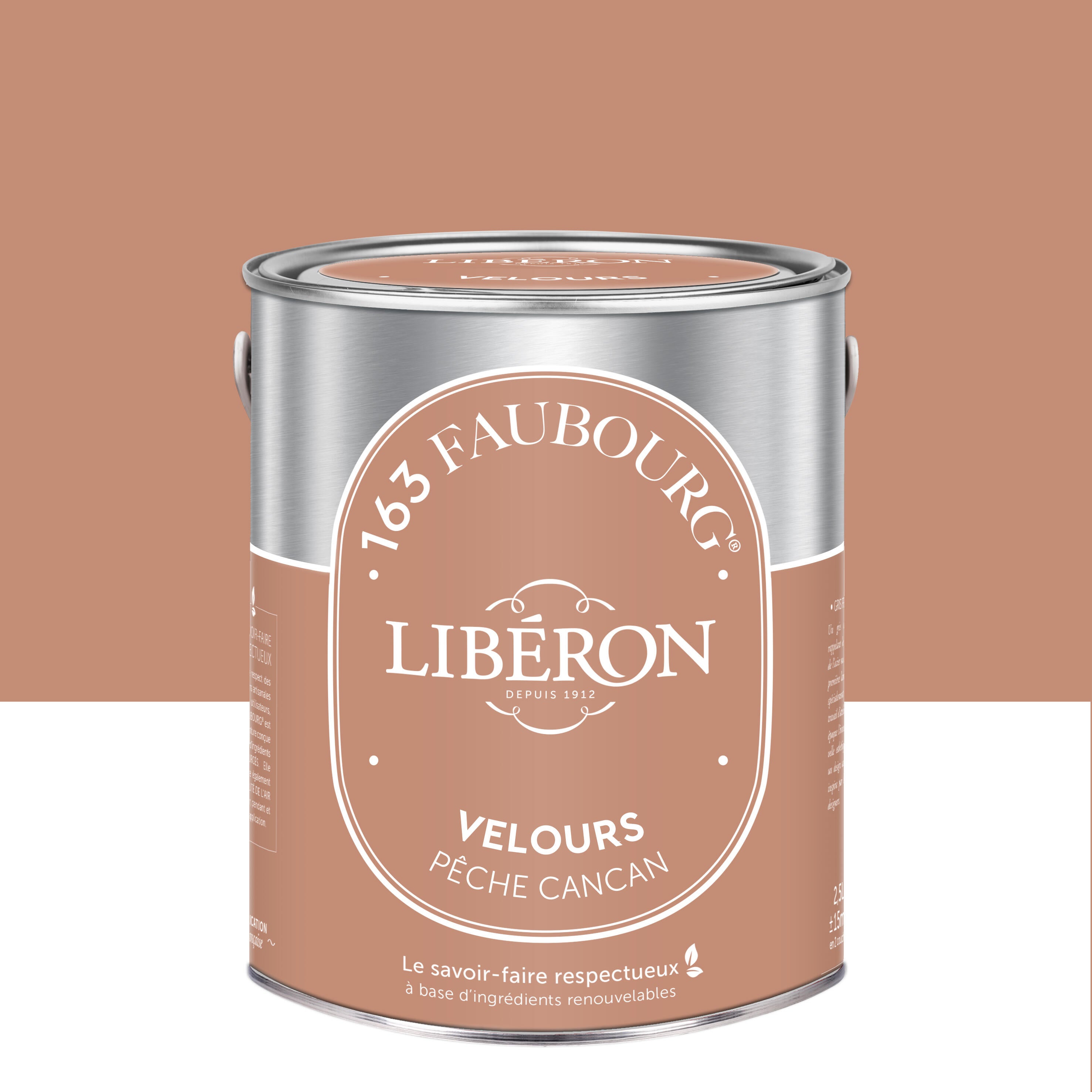 163 Faubourg puise son inspiration dans les savoir-faire artisanaux : une peinture synonyme d’exigence, de qualité et de respect. Une finition hautement esthétique qui cultive l’amour du beau et du bien fait, avec un aspect VELOURS, subtil et élégant, et de jolies teintes de bons tons qui ne jaunissent pas dans le temps. Très facile et agréable à appliquer, elle ne coule pas et sèche rapidement. Elle offre un tendu exceptionnel tel une laque et un excellent pouvoir couvrant. Elle est lessivable et résistante aux taches et frottements, sans s'écailler. Elle s'inscrit dans une démarche vertueuse grâce à une formulation BIOSOURCÉE élaborée à partir d’ingrédients renouvelables d’origine minérale ou végétale.