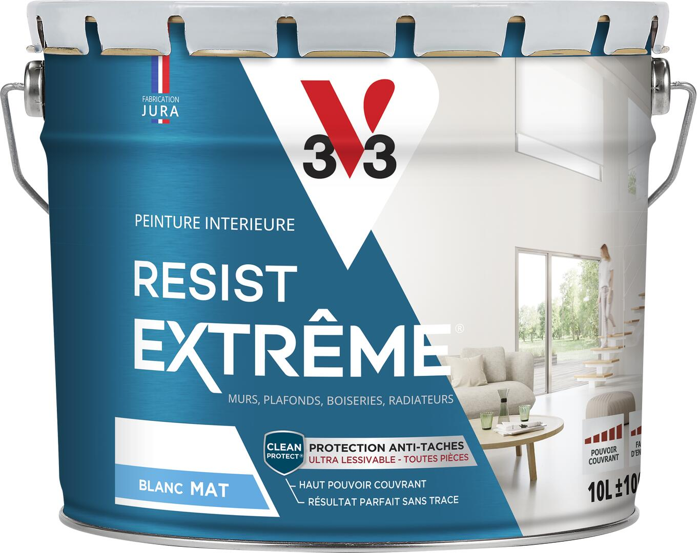 Peinture mur, plafond, boiserie blanc mat V33 Résist' extrême® 10L