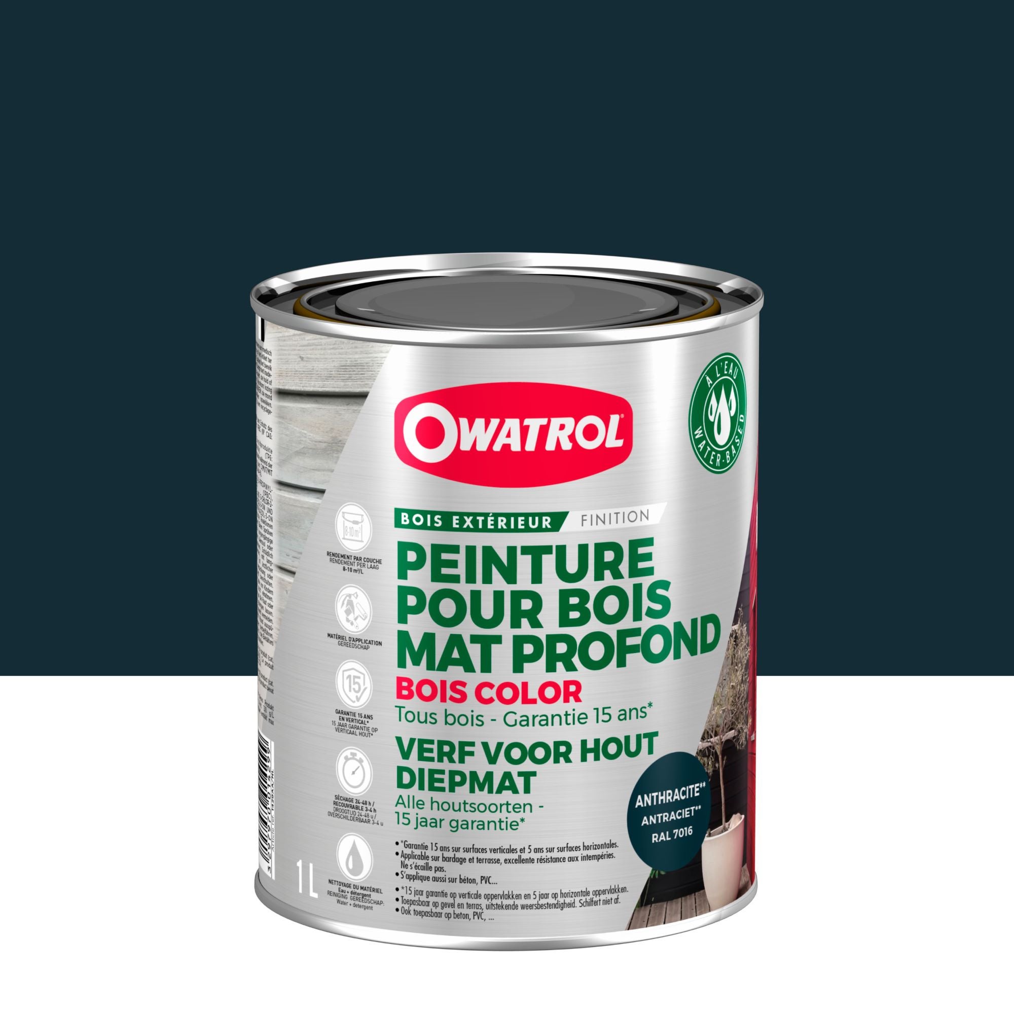 Peinture pour bois extérieur opaque - Finition Mate Owatrol BOIS COLOR Gris Anthracite RAL 7016 1 litre