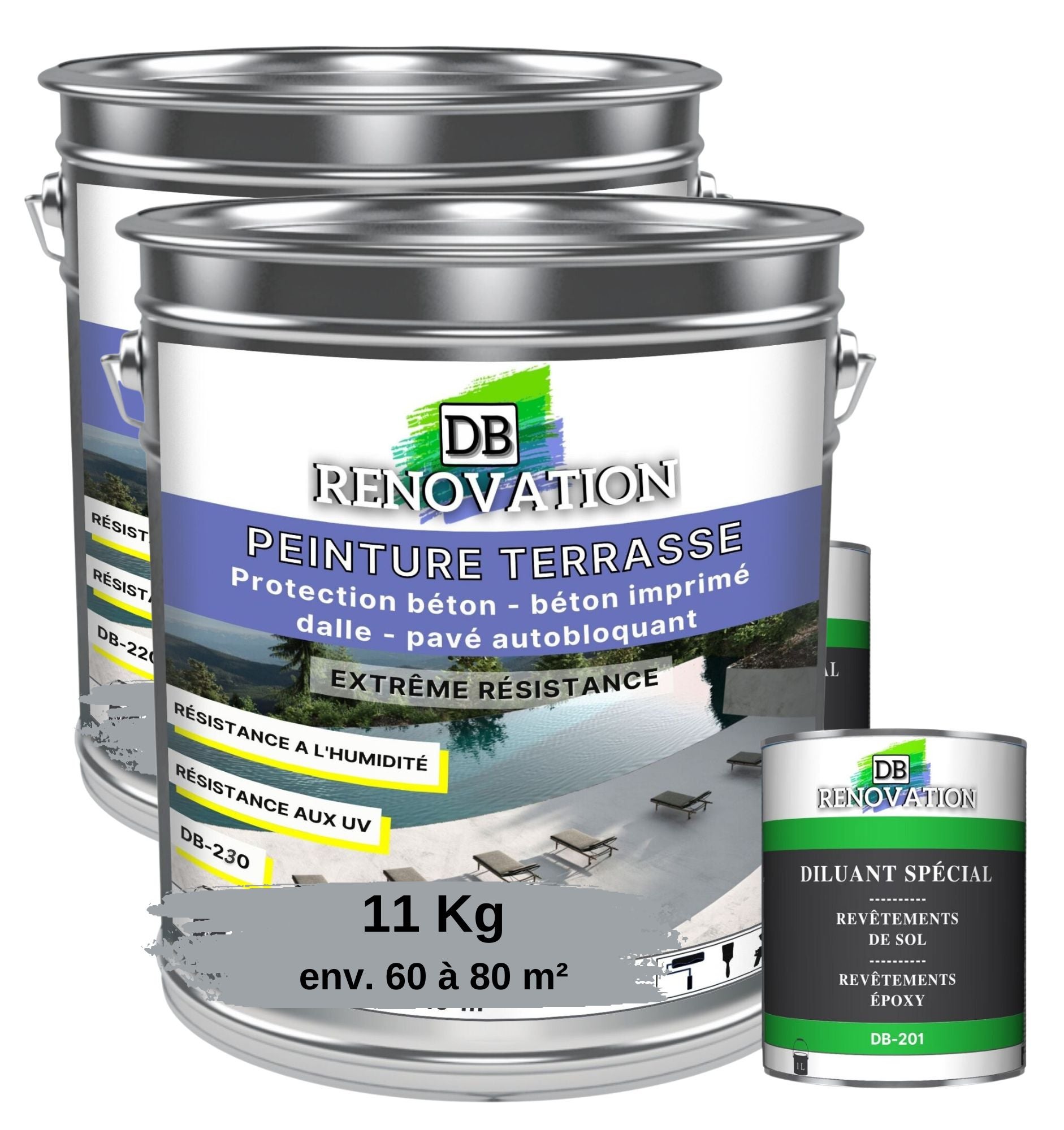 Peinture sol béton Terrasse extérieur - Gris fenêtre 11KG (60 à 80m²) DB RENOVATION - Haute imperméabilité - Satiné