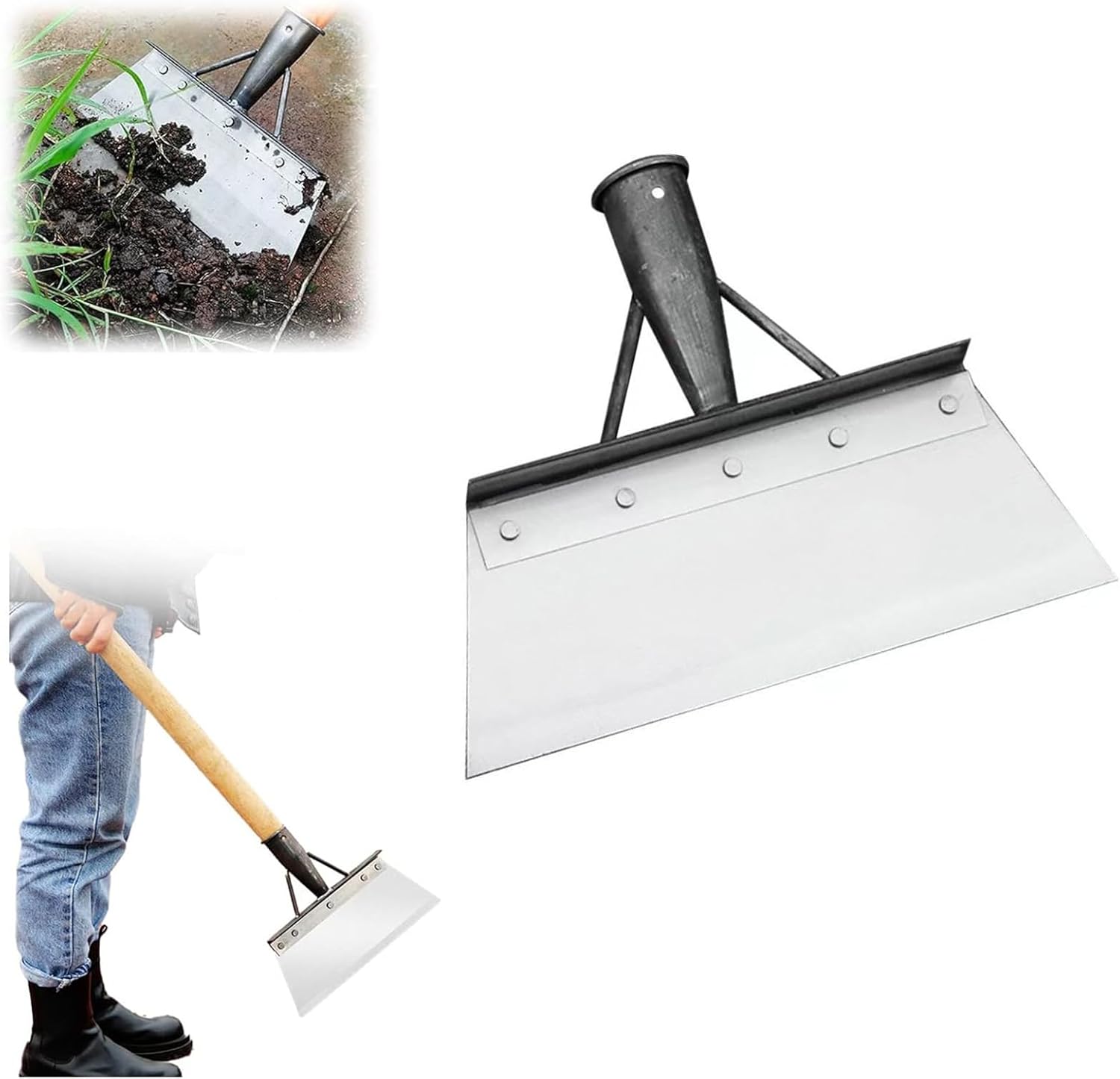 【Creuser et nettoyer efficacement】L'acier robuste et le bord tranchant facilitent le creusement, le hachage et le levage. La tête de pelle sans couture s'adapte parfaitement aux surfaces, garantissant un nettoyage en profondeur sans laisser passer les débris ni la poussière.