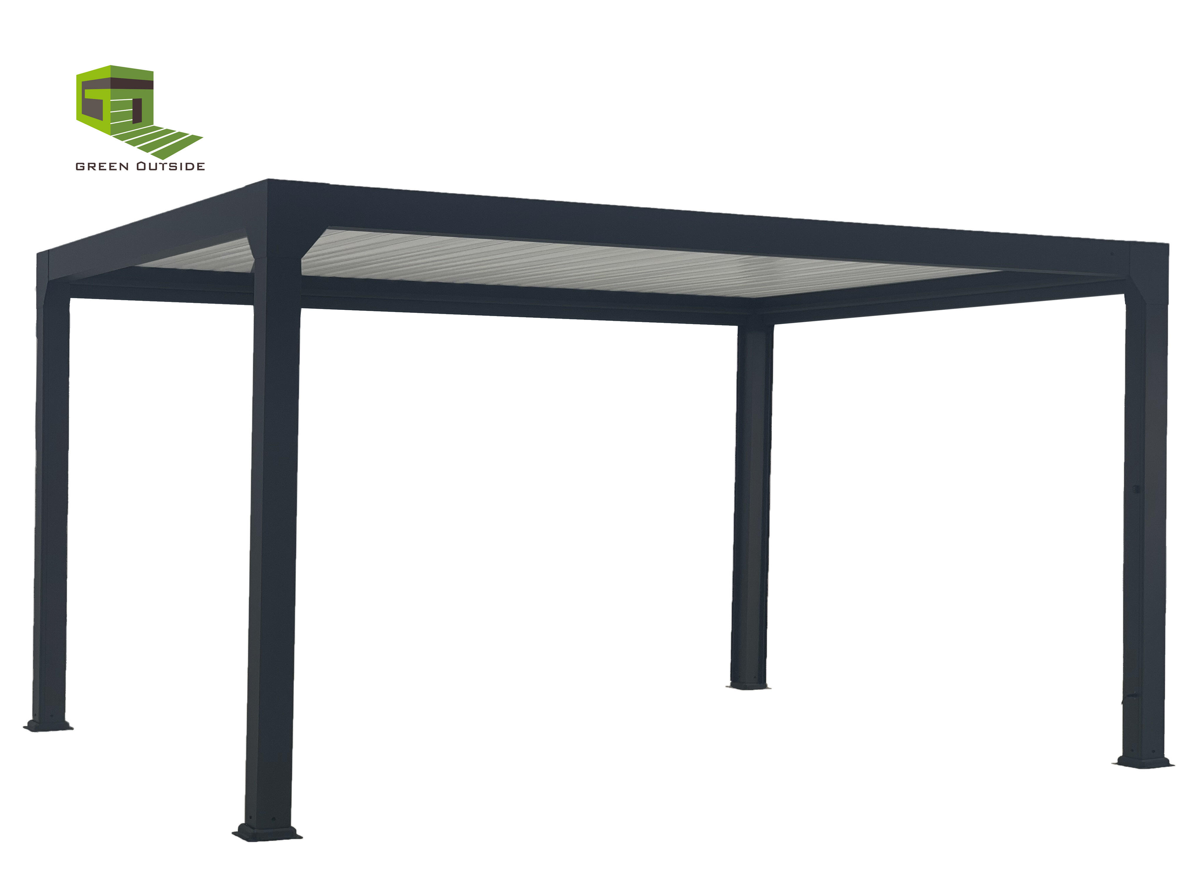 Pergola bioclimatique motorisée alu noir 2100 Ménéa 5x3 + led GREEN OUTSIDE